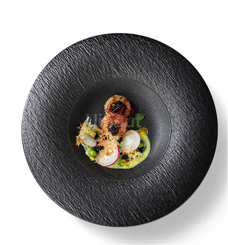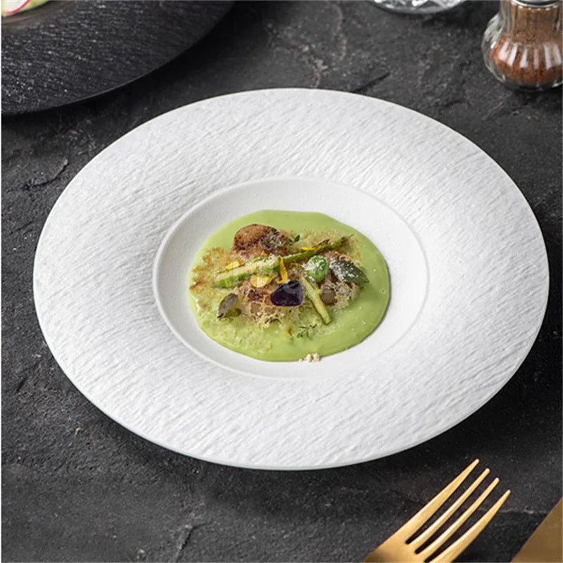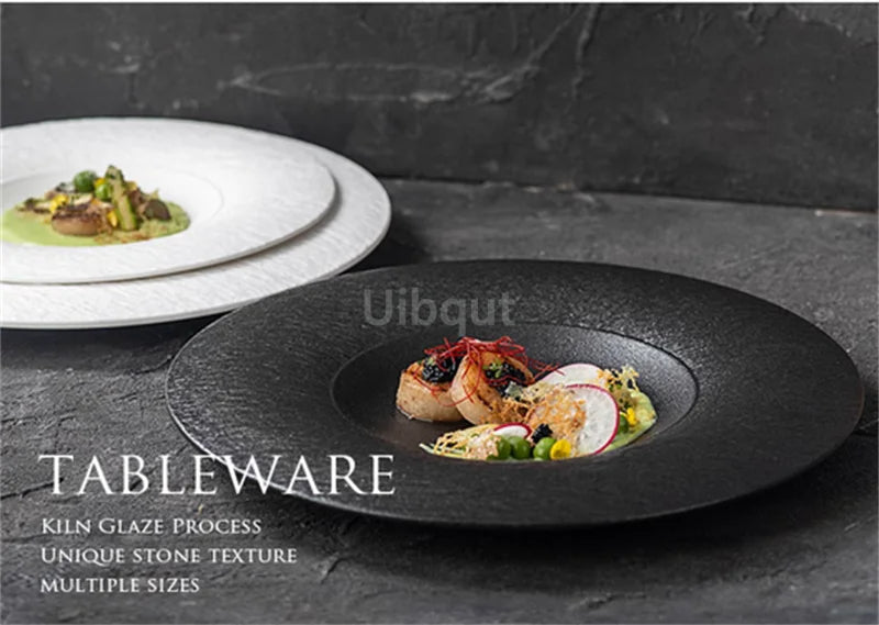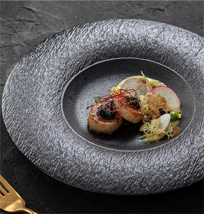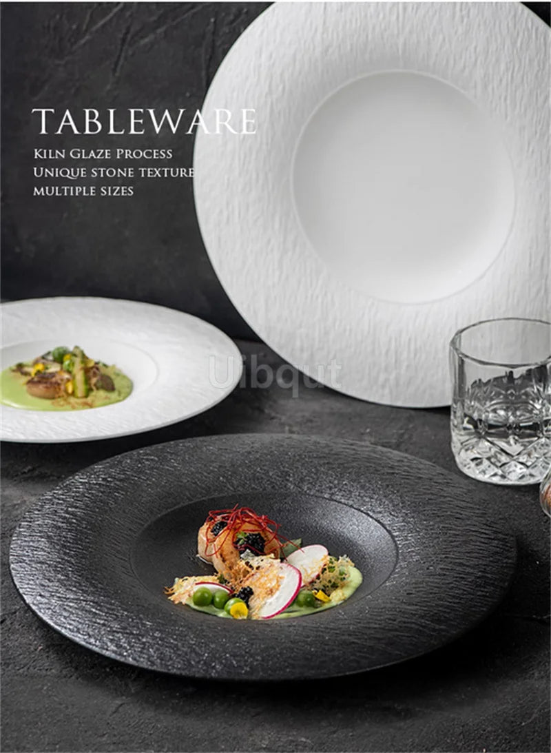 Creative white black high-end Western dining steak plates French style tableware luxury household pasta vegetable round tray