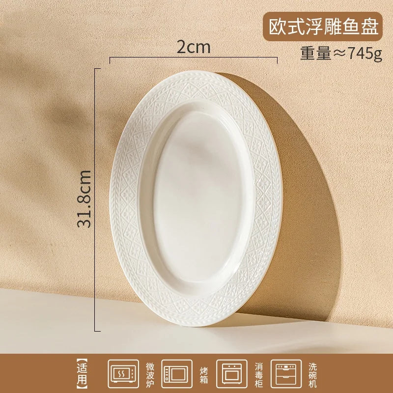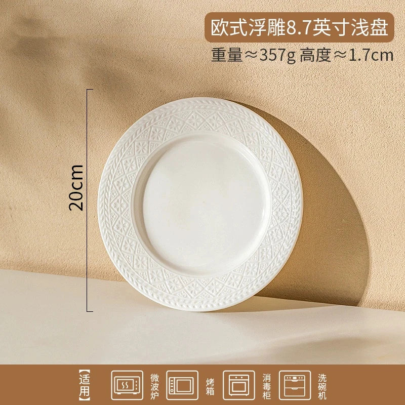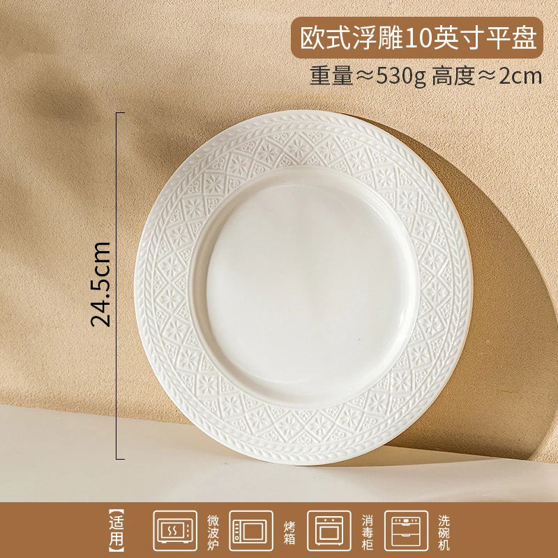 French relief steak dinner plate Deluxe sense light luxury household ceramic pasta plate plate kitchen cutlery