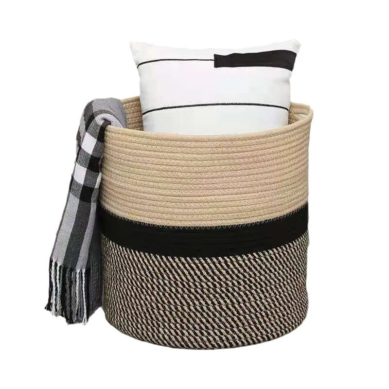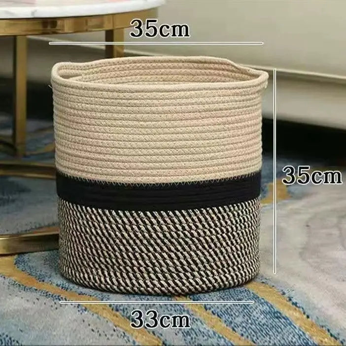 Hand-Woven Cotton Rope Basket Large Capacity Round Pot Holder Indoor Storage Basket For Store Plants Toys Clothes Japanese Style