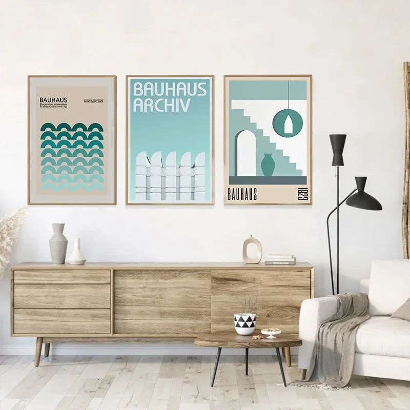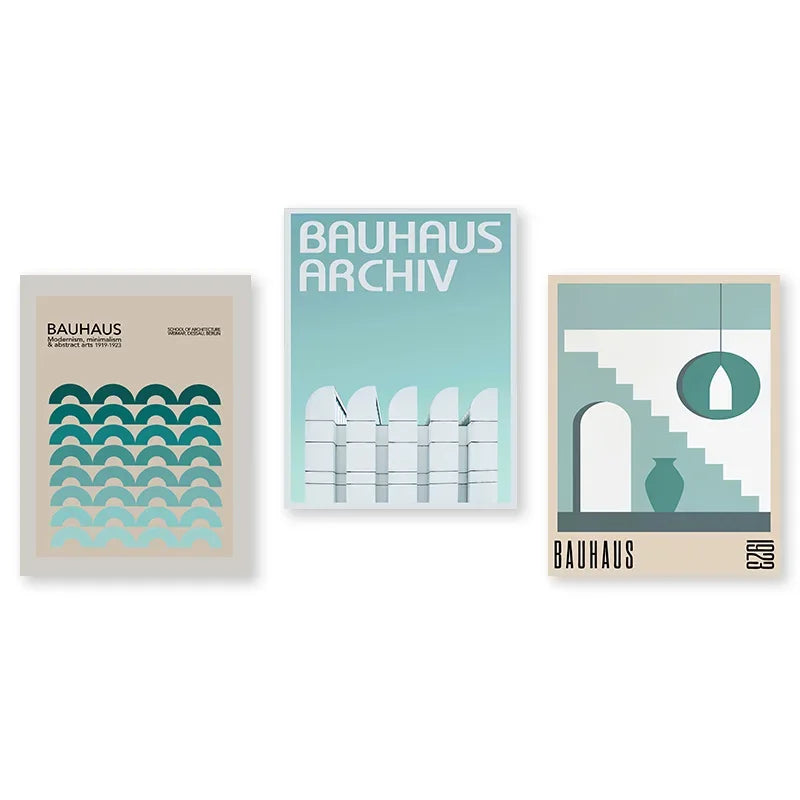 Light Blue Minimalist Bauhaus Line Poster Minimalist Abstract Gallery Living Room Decoration Canvas Painting Wall Art