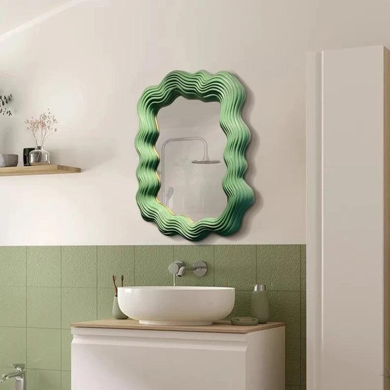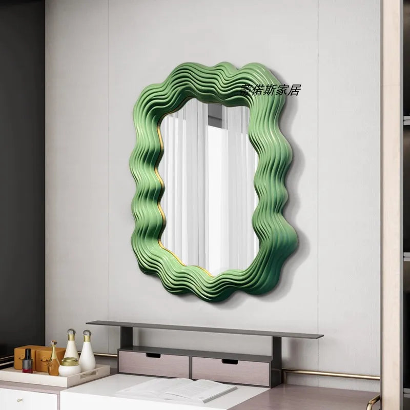 Luxury Big Hanging Asymmetrical Espelhos Living Room Decorations Wavy Art Mirror Wall Aesthetic Vanity Irregular Funky Mirror