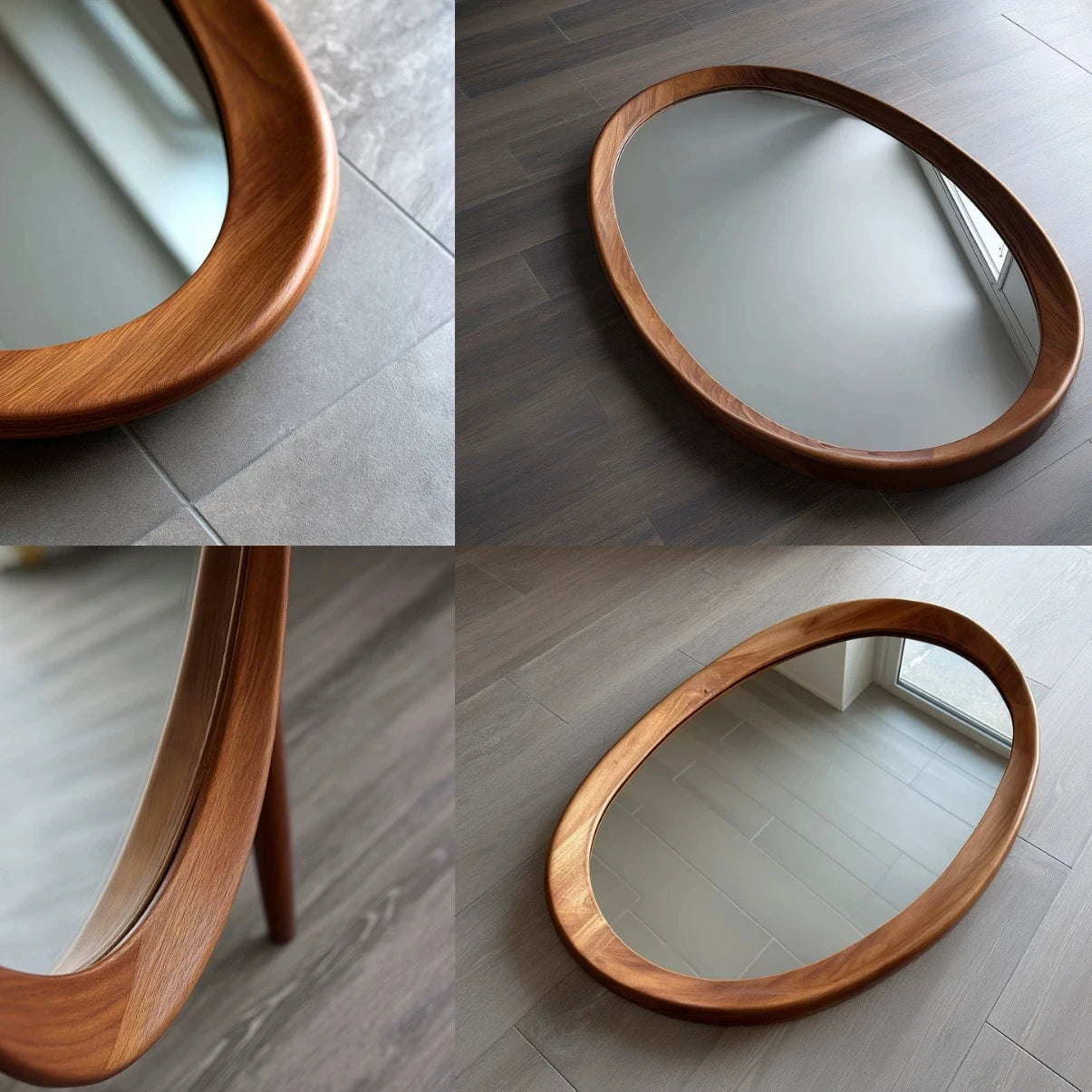 Middle ancient Zen style solid wood irregular mirror, wall mounted household living room decoration full-length mirror
