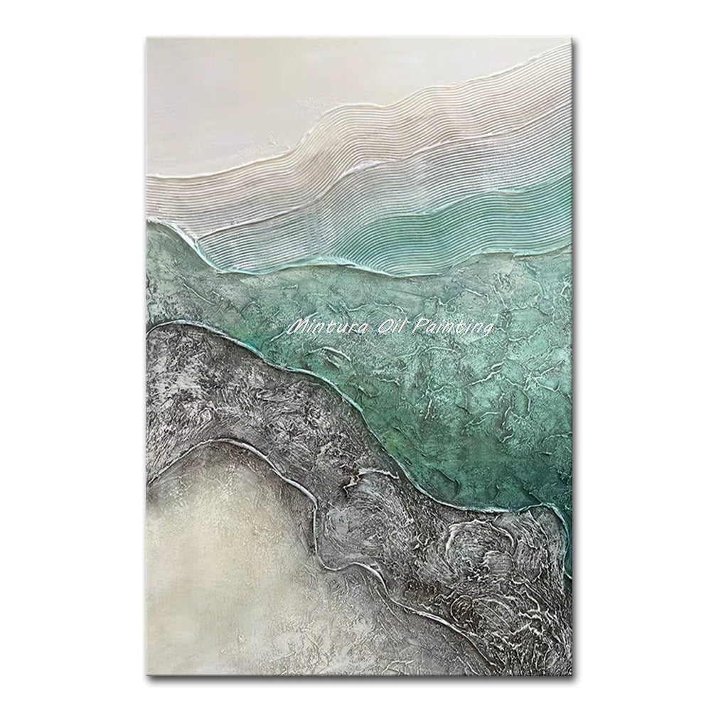 Mintura,Handpaintd Abstract Texture Green Tennis Court Oil Painting on Canvas,Modern 3D Knife Art Poster,Wall Picture,Home Decor