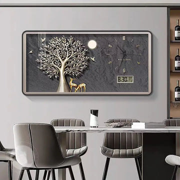 New dining room decorative painting with clock living room perpetual calendar wall clock Silent electronic clock