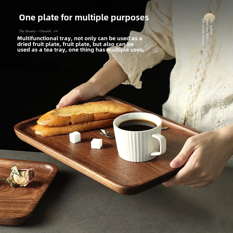 North American Black Walnut Wood Tray Household Wooden Tea Tray Put Cups Wooden Plate Coffee Dessert Storage Dinner Plate