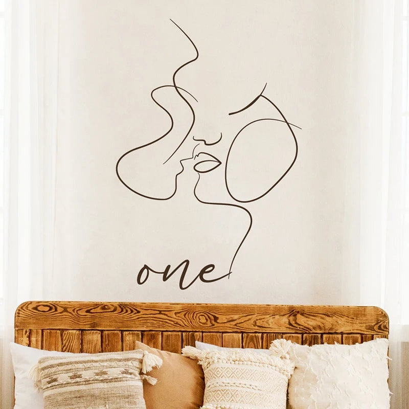 One line Drawing Wall Decal Abstract, Couple Line Art, Boho, Modern, Minimalist, Vinyl Sticker, Above Bed Decor, Romantic 2307