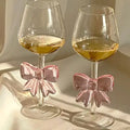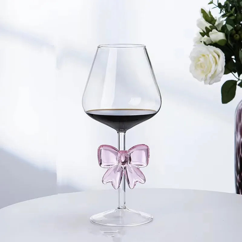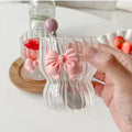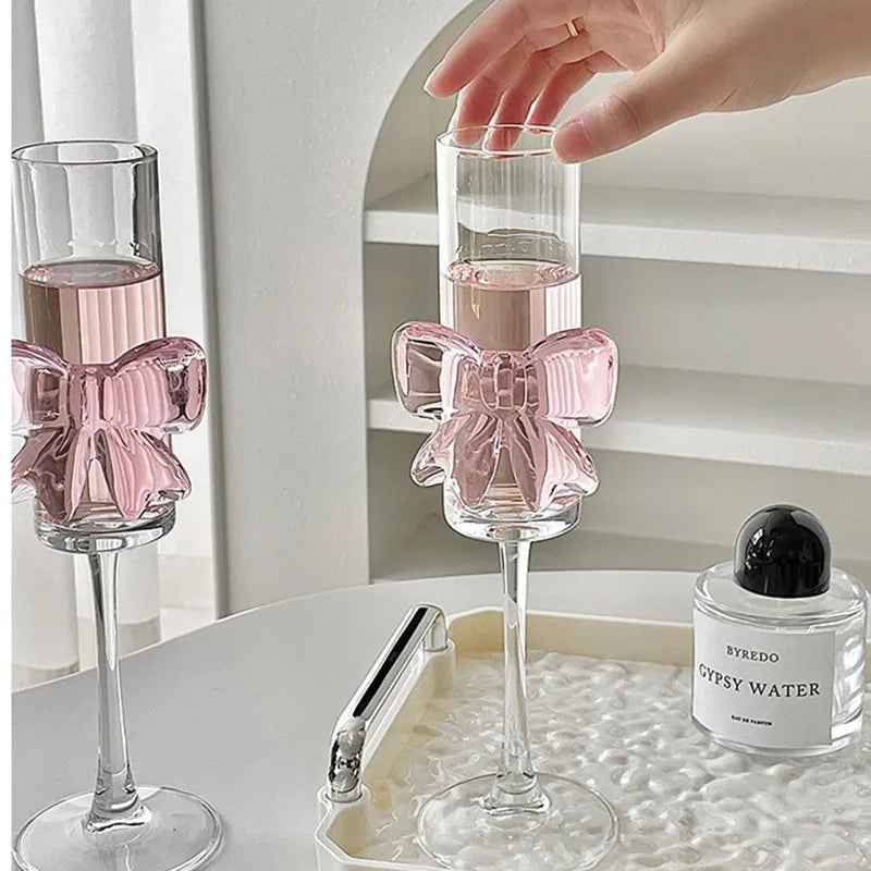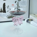 Pink Bow Glass Mug Decor Glass Cup Goblet Bow Handle Glasses Wine Cocktail Glass Dessert Ice Cream Bowl Drinking Glass
