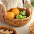 Round Rattan Woven Basket, Wicker Fruit Basket, Bread Food Kitchen Home Decor Organizer, Breadbasket For Kitchen