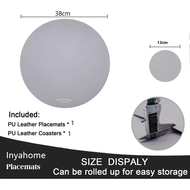 1/2/6Sets Round Table Placemats and Coaster Set Luxury Shaped Fuax Leather PU Coffe Table Mat Cafe Pad Kitchen Accessories Grey