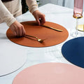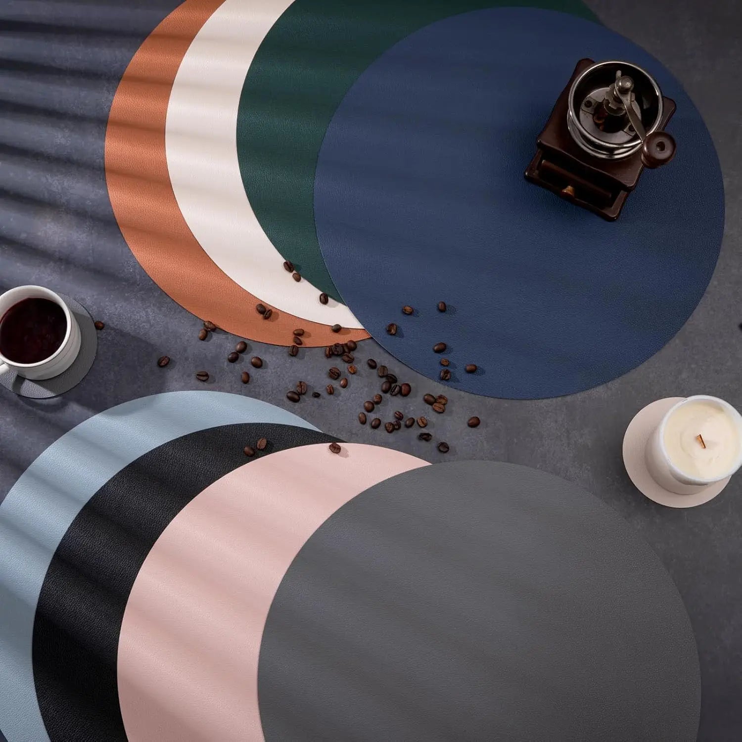 1/4/10Set Round PU Faux Leather Placemats and Coasters Set Double Color Elegant Dining Table Mat Pad Party Desktop Decoration