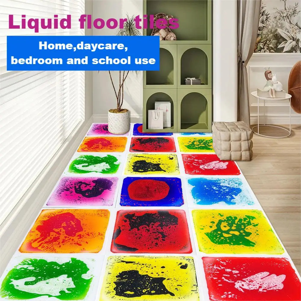 1/4/6/9pcs Liquid Splicing Floor Mats, Decorative Floor Tiles, For Home Nursery And School, Bathroom Accessories, Home Decor