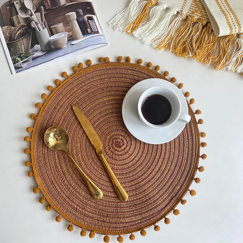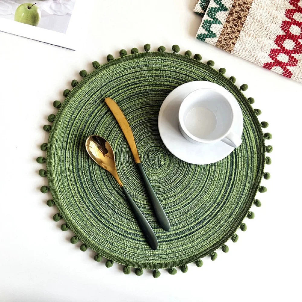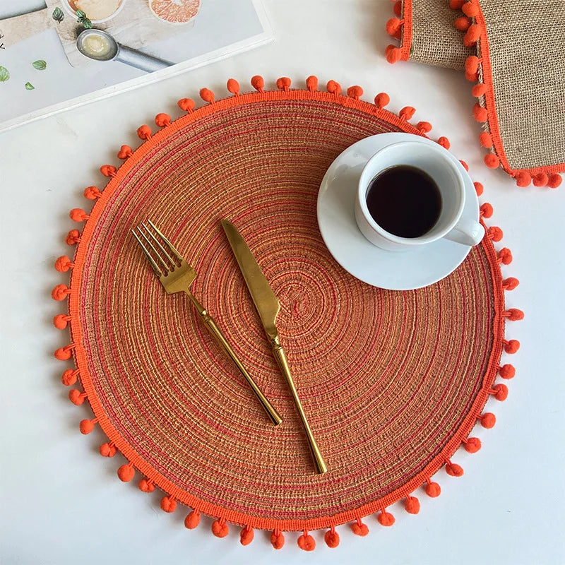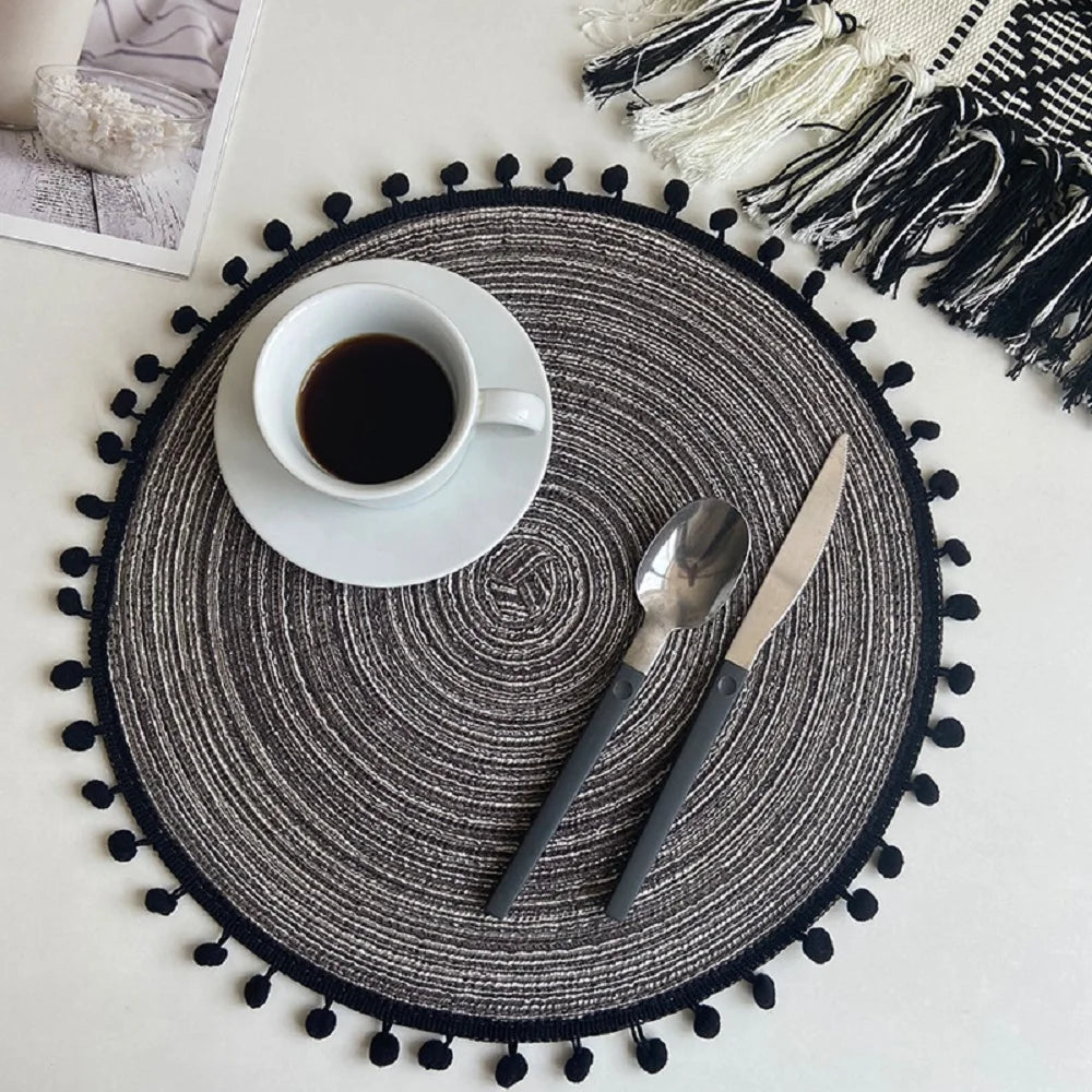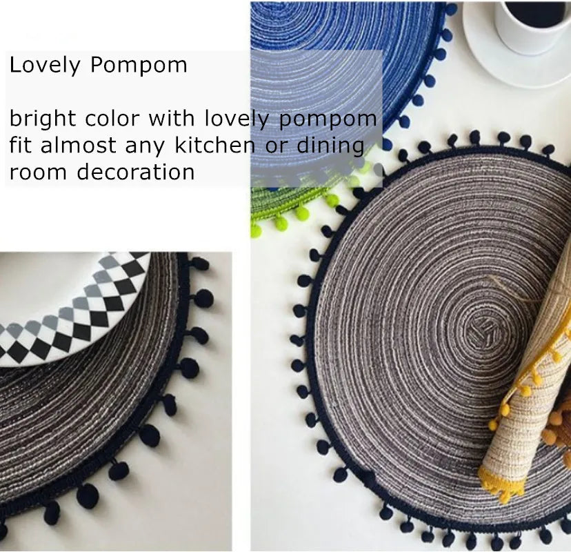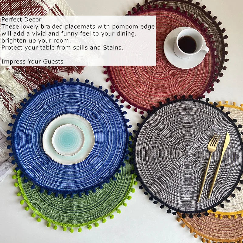 1/6/10PCS Round Braided Placemats with Pompom for Dining Tables Woven Cute Table Mats Coffee Pads Kitchen Accessor 식탁매트 Салфетки