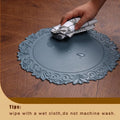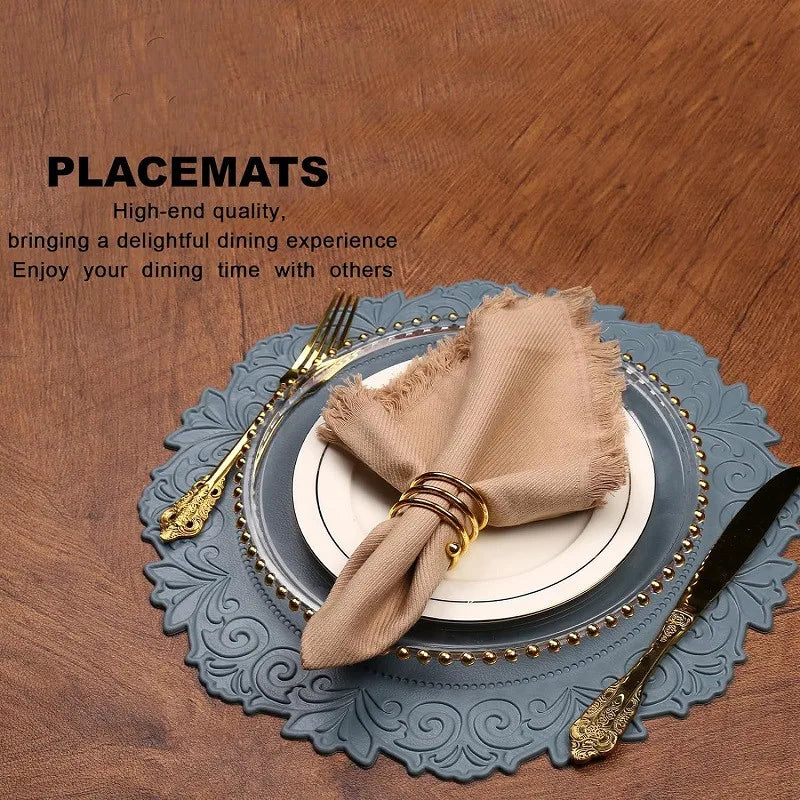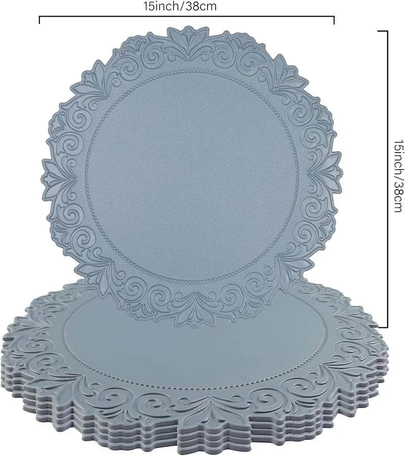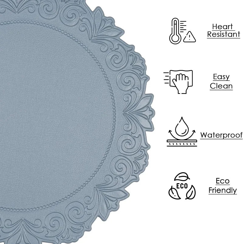1/6/10PCS Round Kitchen Table Mat European Embossed Waterproof Faux Leather Round Table Placemats for Kitchen Dining Patio 식탁매트