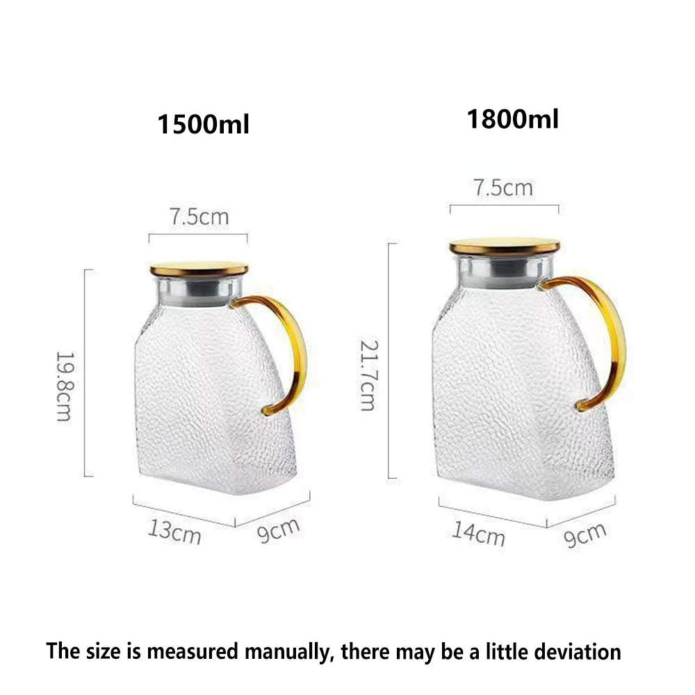 1.8L/60oz Glass Water Jug with Handle and Lid Refrigerator Water Jug for Cold and Hot Water Iced Tea Juice Coffee Milk Beverages