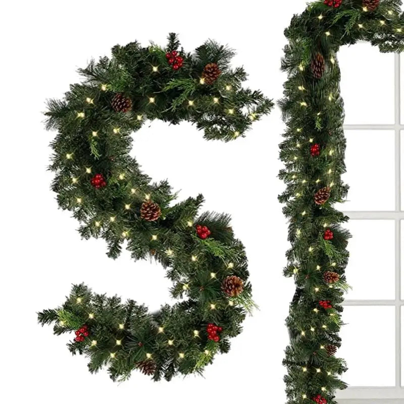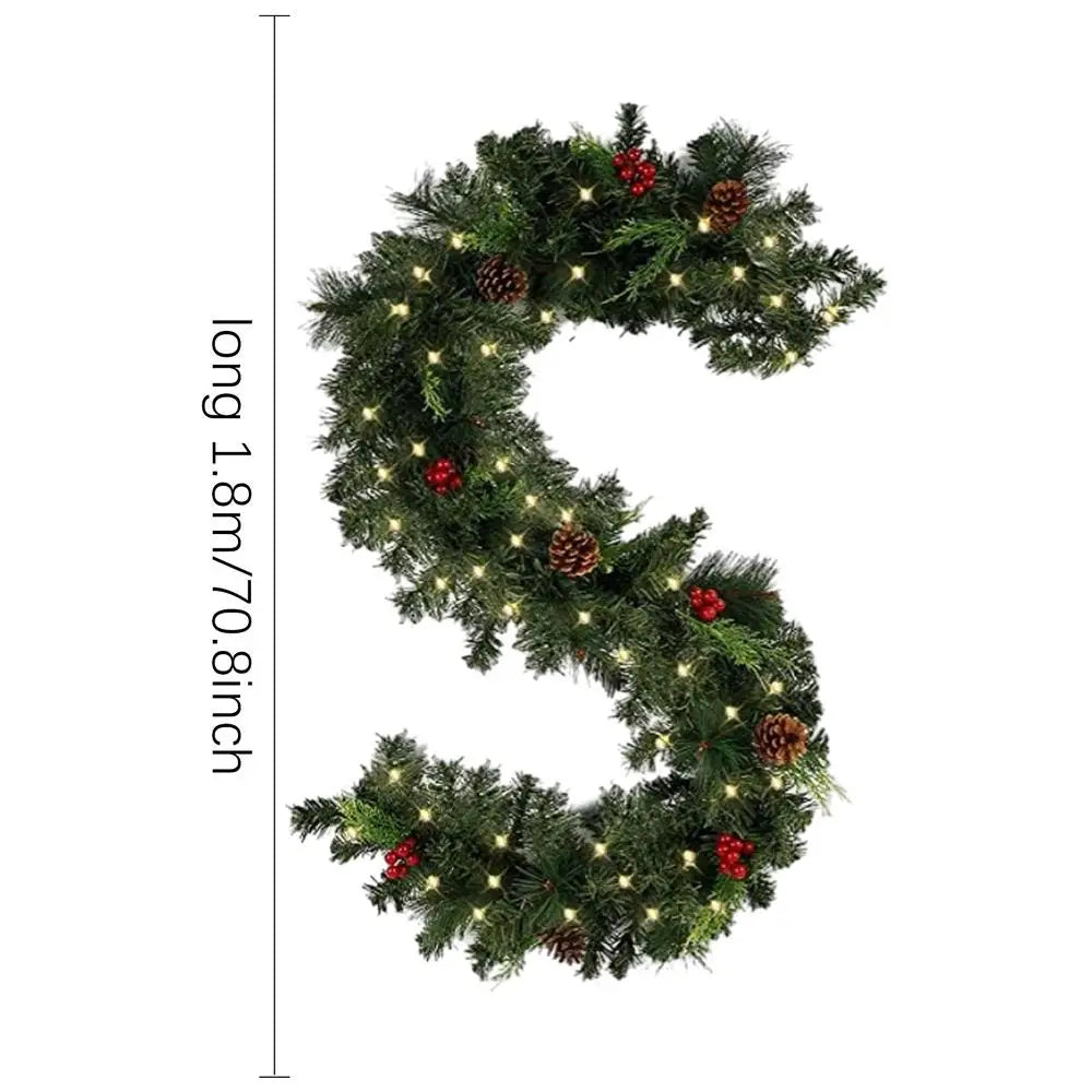 1.8M Christmas Garlands LED Christmas Rattan Garland Decor Artificial Flower Xmas Tree Party Decors with 2 Lighting Modes