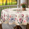 1 Piece Floral Round Tablecloth, 5 Sizes Available, Rose Flower Pattern Printed Tablecloth, Edge Embossing Process, Spring Garden Tablecloth Decoration, Tablecloth for Daily Home Kitchen, Terrace, Home Decoration, Spring Deco