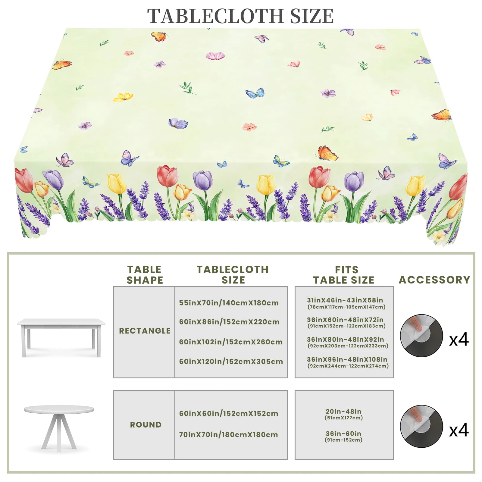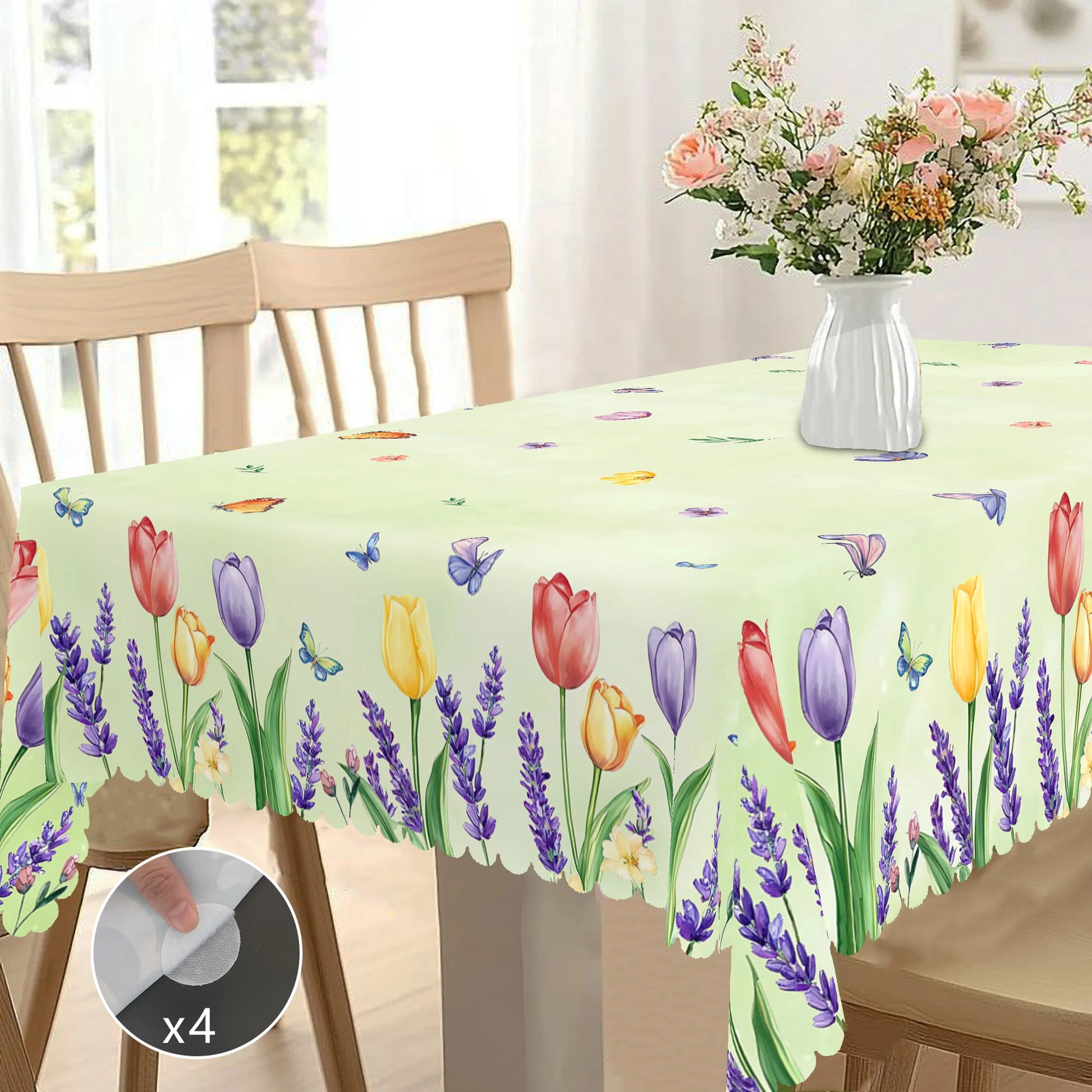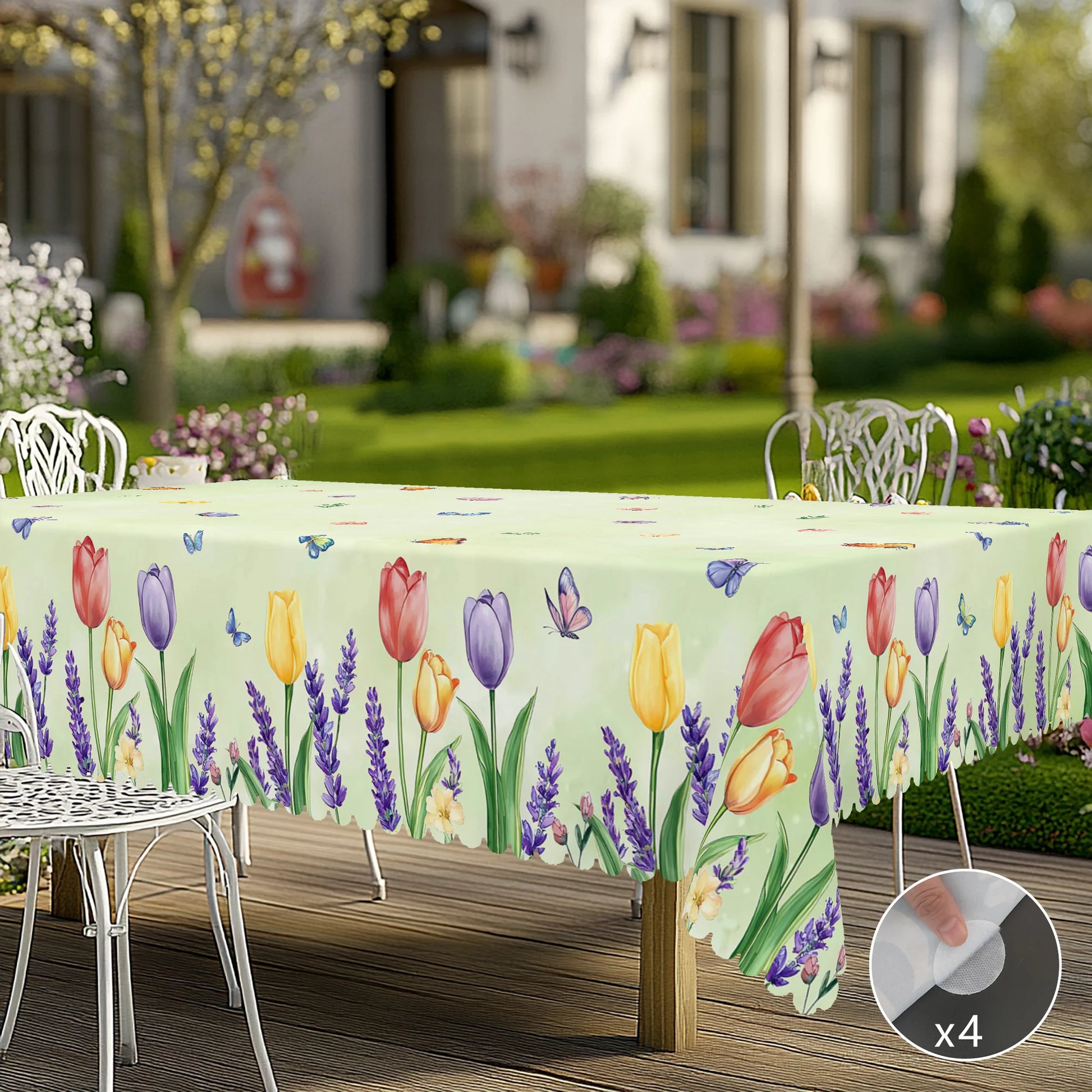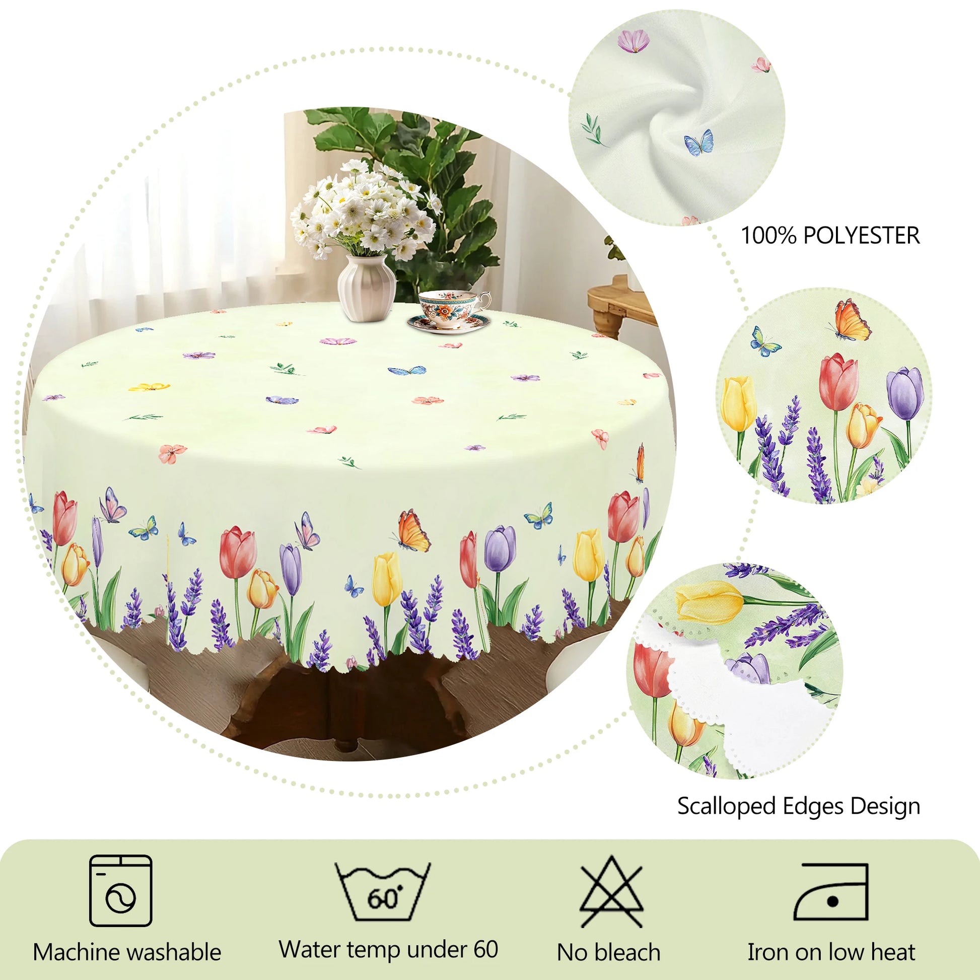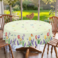 1 Piece Floral Round Tablecloth, 5 Sizes Available, Tulip Lavender Butterfly Pattern Printed Tablecloth, Edge Embossing Process, Spring Garden Tablecloth Decoration, Tablecloth for Daily Home Kitchen, Terrace, Spring Decorati