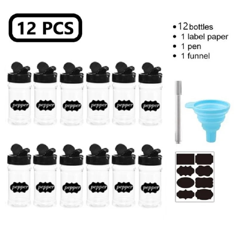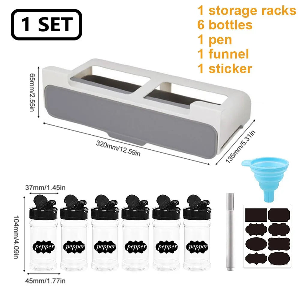 1 Set Spice Rack Organizer with 6/12pcs Plastic Spice Bottles for Under Shelf Kitchen Cabinet Storage Seasoning Containers