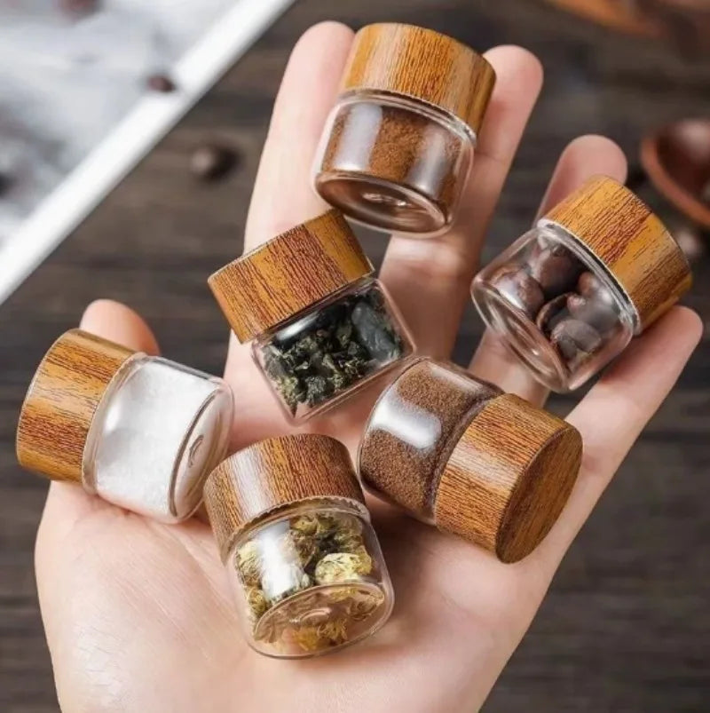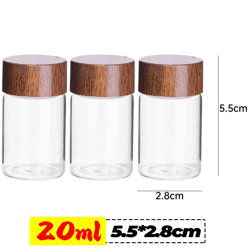 10/20/30ml Mini Glass Bottles DIY Glass Vials Wood Lid Storage Container Tube Portable Coffee Beans Sealed Tank Candy Spice Jars