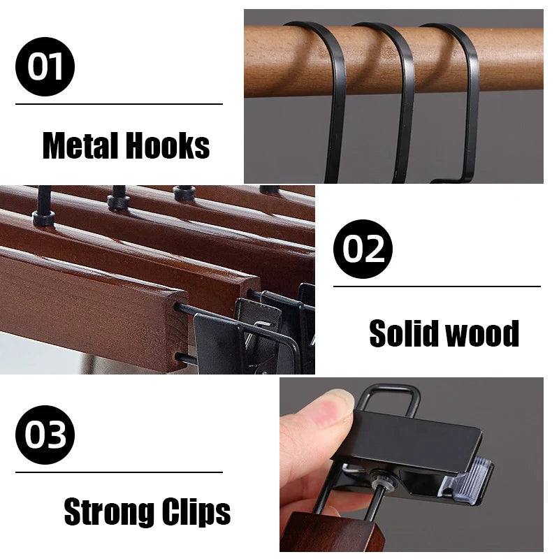 10/20/30pcs Pants Hanger for Store,Retro Solid Wood Trouser Hangers Clip Space Saving for Dress,Wardrobe Organizer Clothes Rack