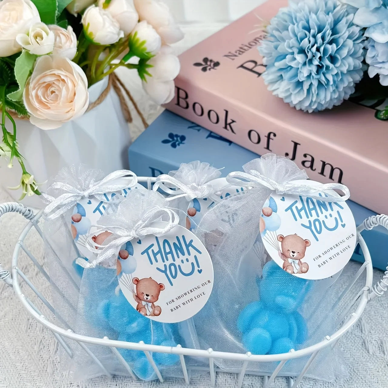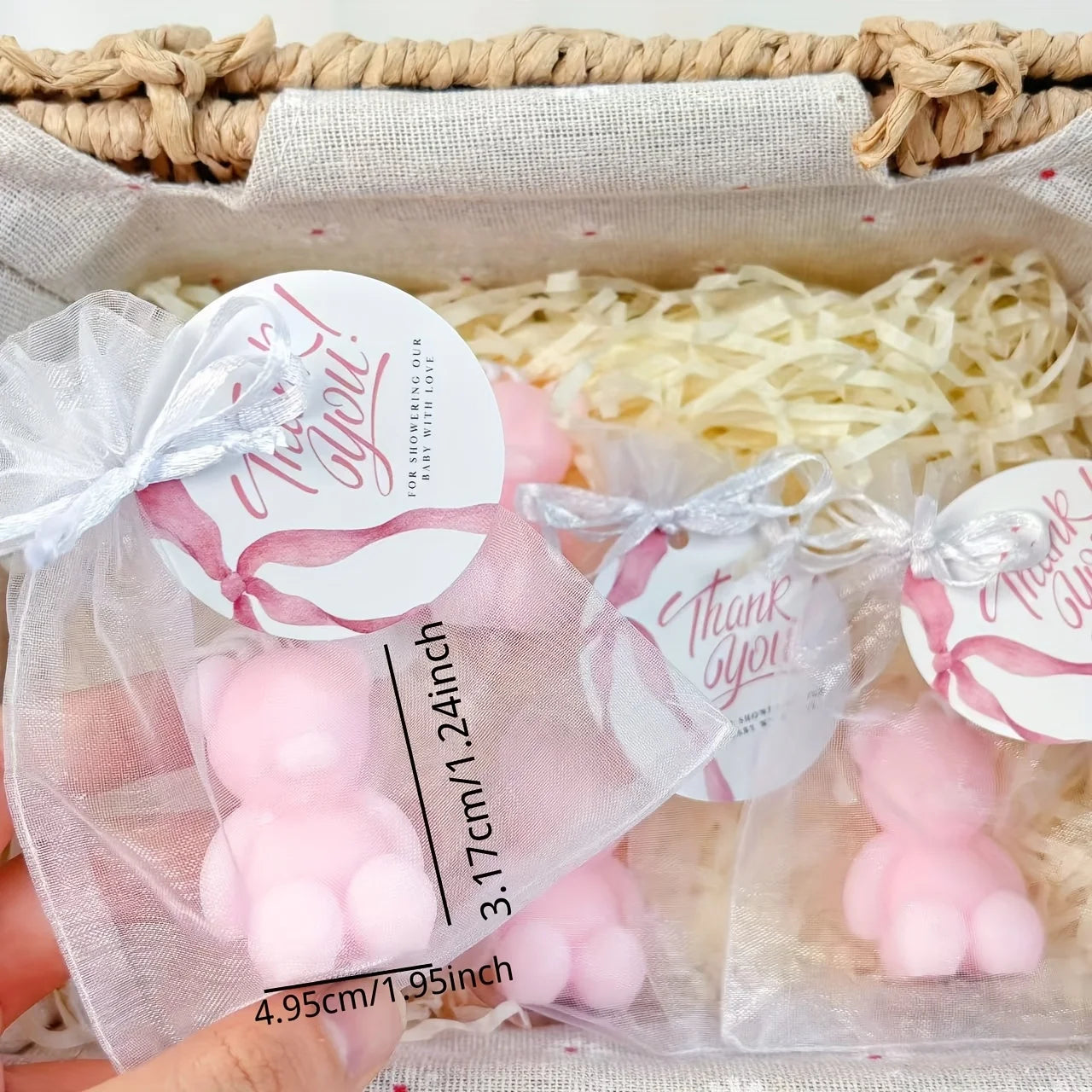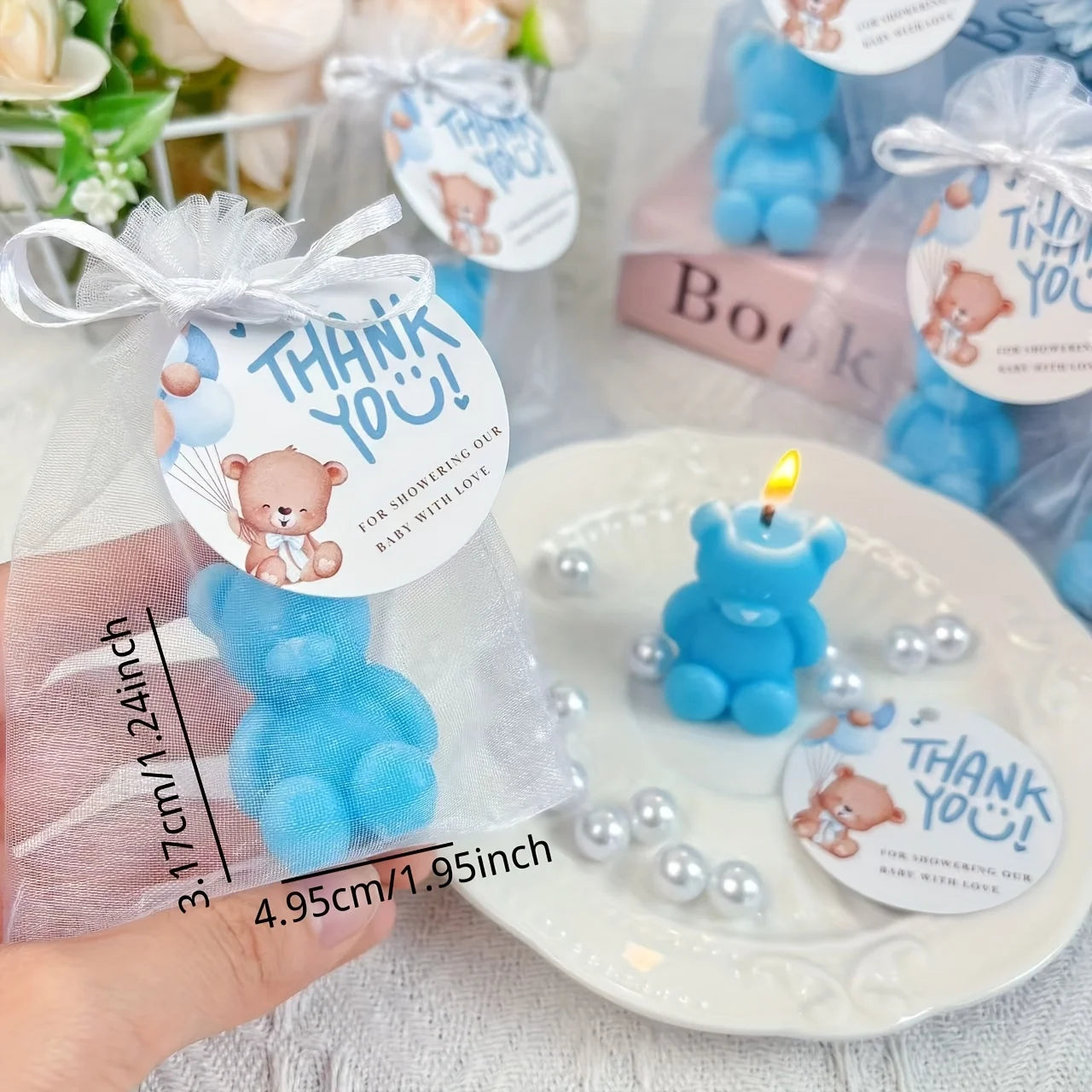 10/20 Sets Pink/Blue Bear Shaped Candles, with Thank You Card and Organza Bag, Suitable for Baby Shower, Gender Reveal Party