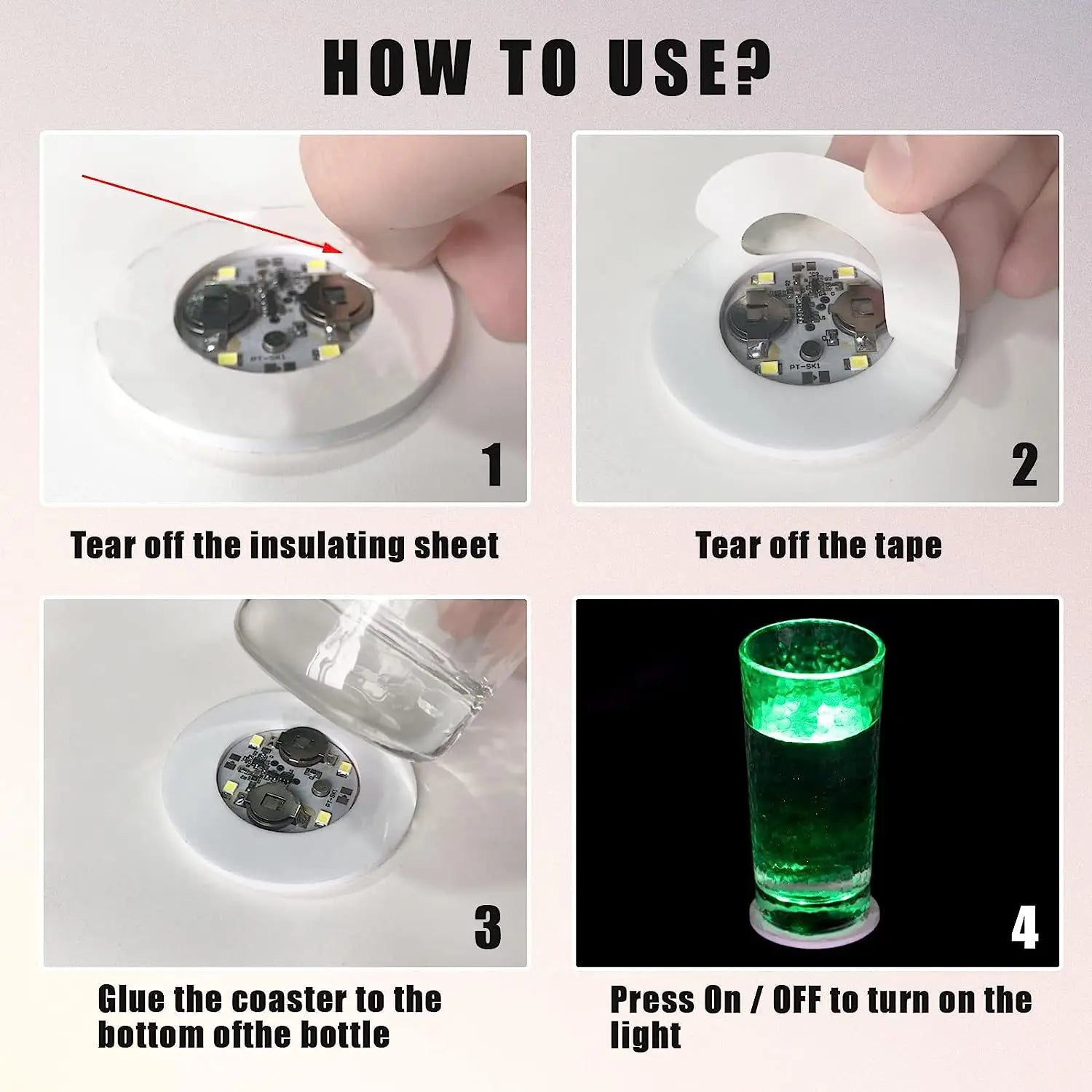 100Pcs LED Tableware Mat Cup Luminous Sticker Colorful Flashing Bottle Sticker Light-emitting Coaster Stall Bar Light