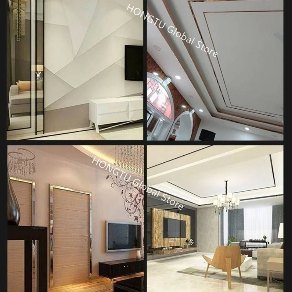 10M Gold Wall Sticker Strip Stainless Steel Flat Self Adhesive Sticker Living Room Decoration Mirrors for Home Wall Edge Strip