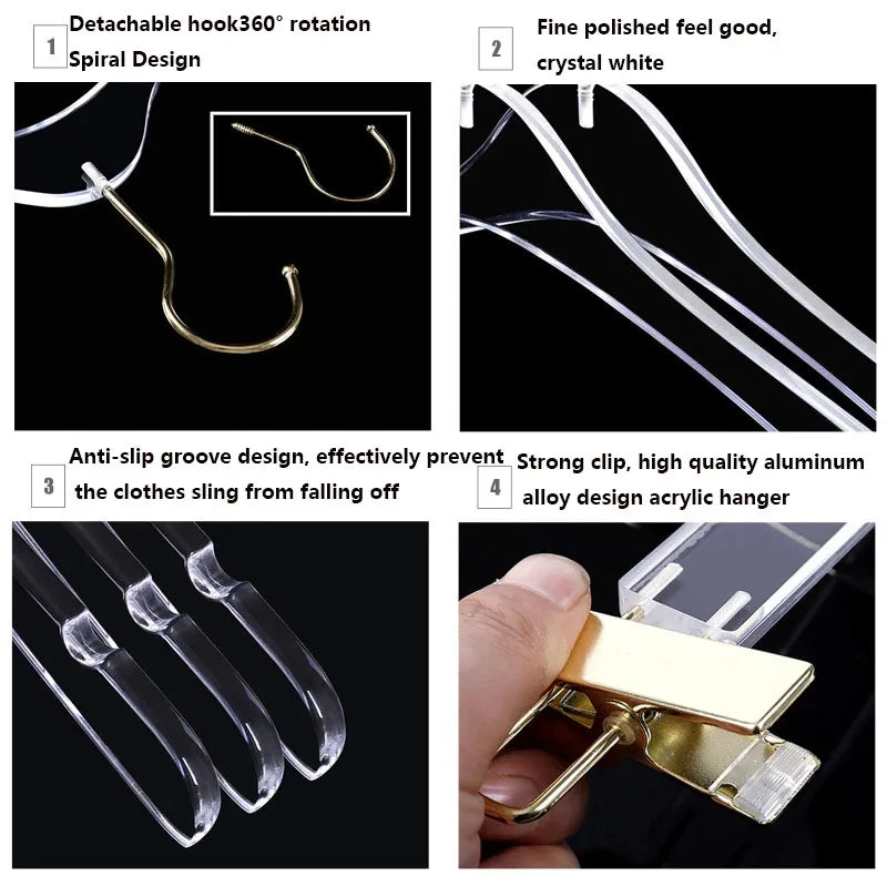 10Pc, Acrylic Coat Hanger Closet Organizer,Anti-slip Clothes Hanger,Transparent Pants Rack for Home Student Dormitory