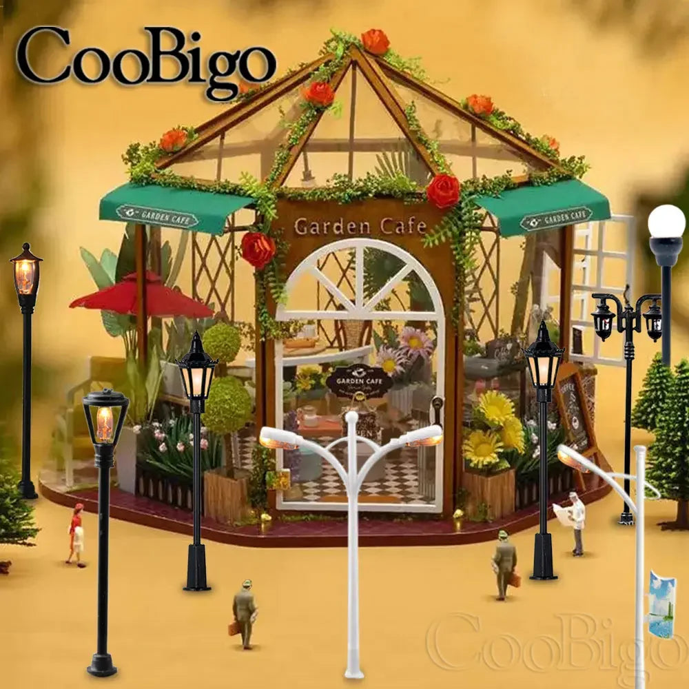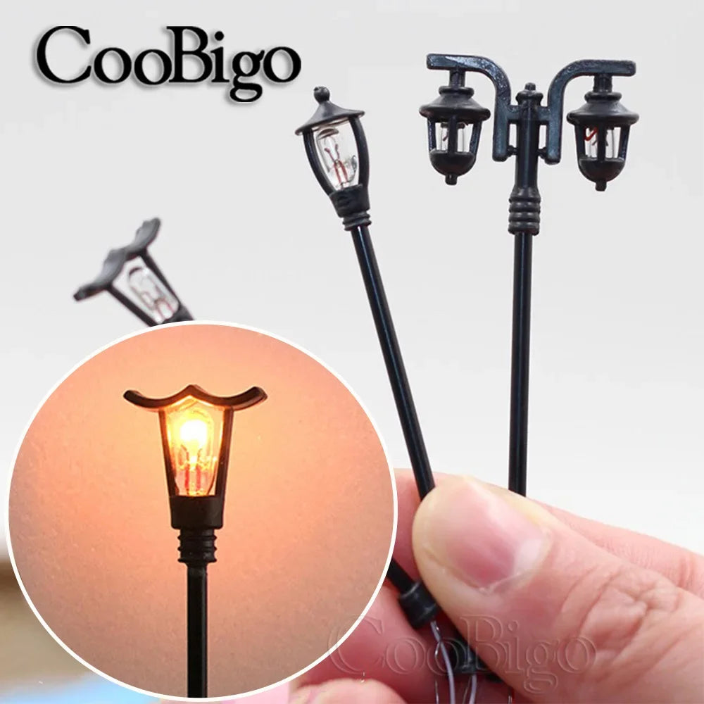 10pcs Micro Street Lamp Road Streetlight Mini Lamppost Light LED Lighting Miniature Model DIY Craft Garden Landscape Decoration