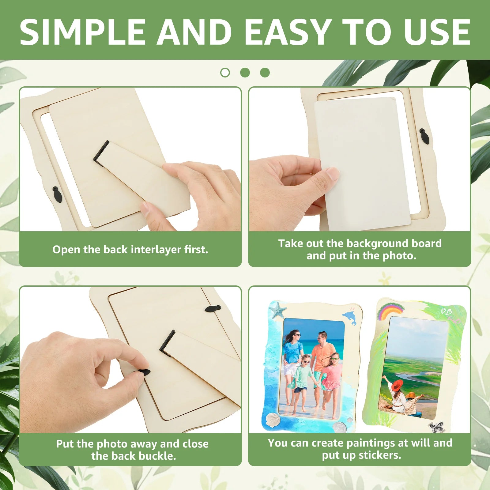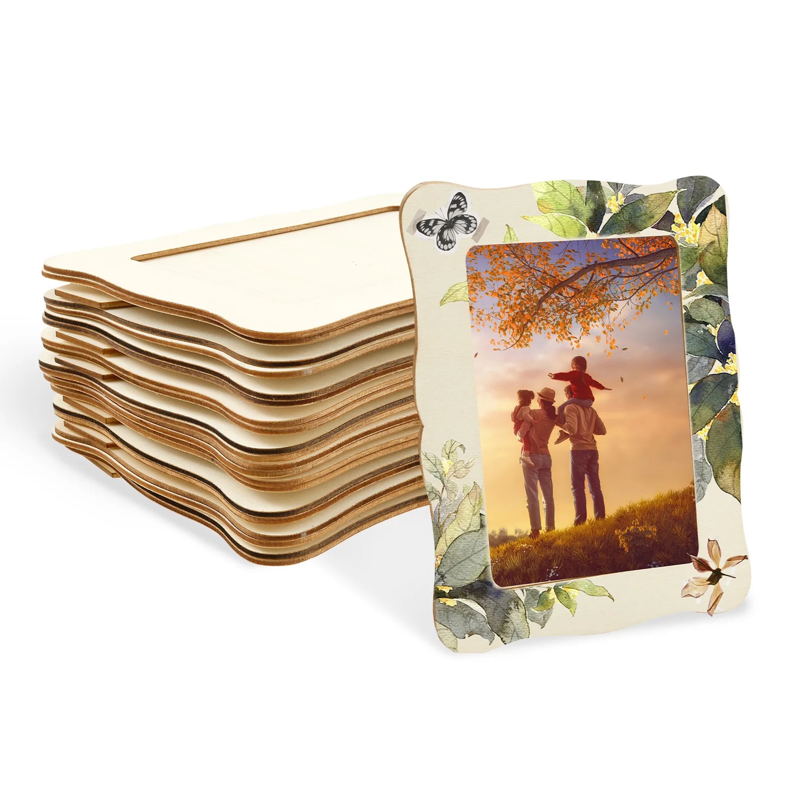 10Pcs Unfinished Wooden Frames Wavy/Rectangle Photo Holder DIY Painting Crafts Photo Display Stand Home Office Desktop Decor