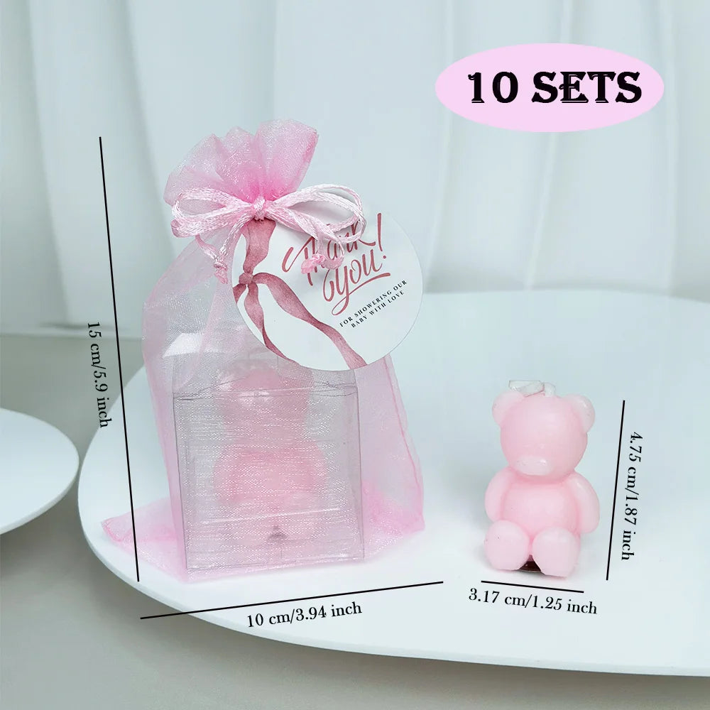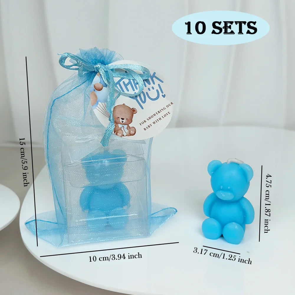 10Sets Candles Includes 10 Mini Bear Candle 10 Cards &10 Bags with, for Baby Shower Wedding Gender Reveal Birthday Party Gift