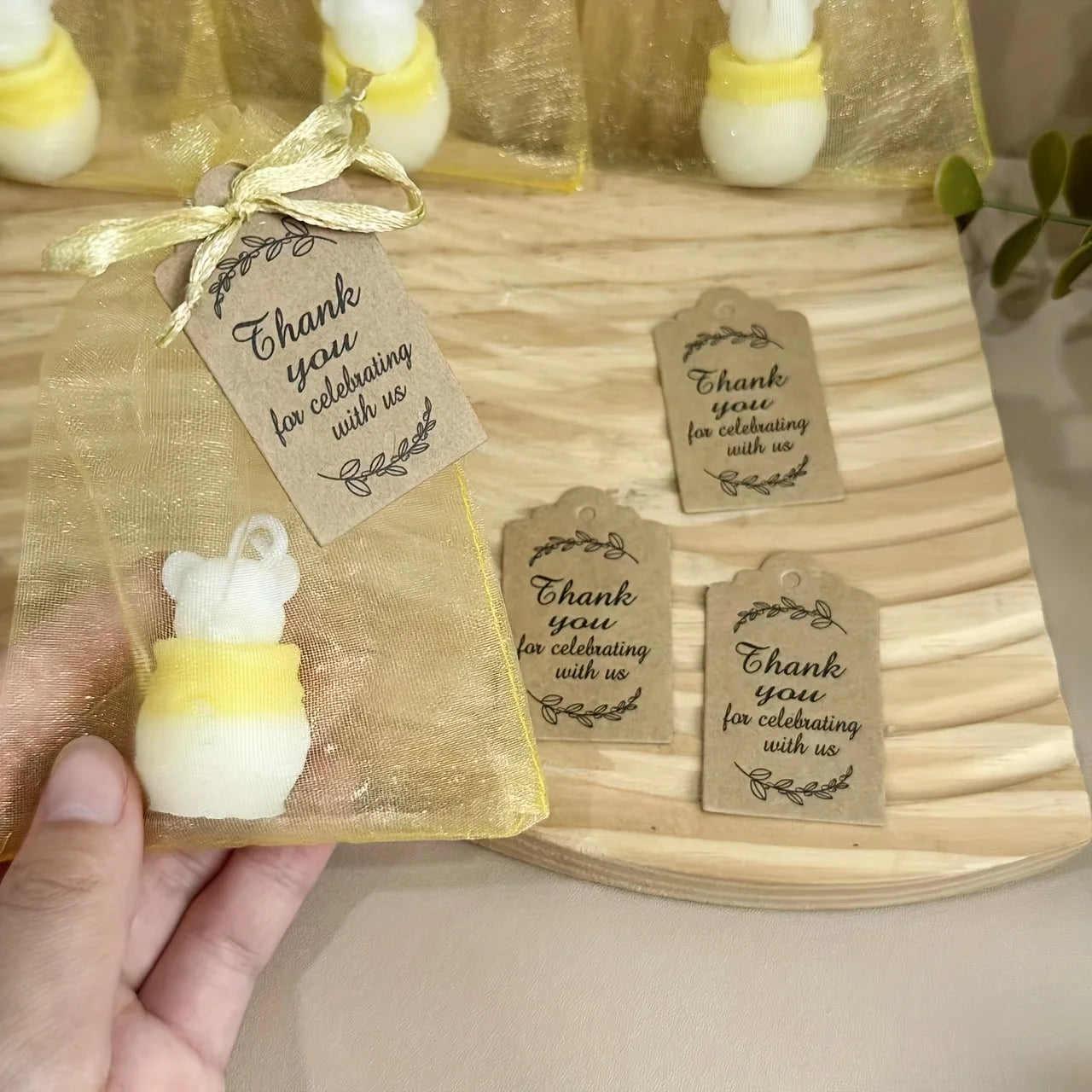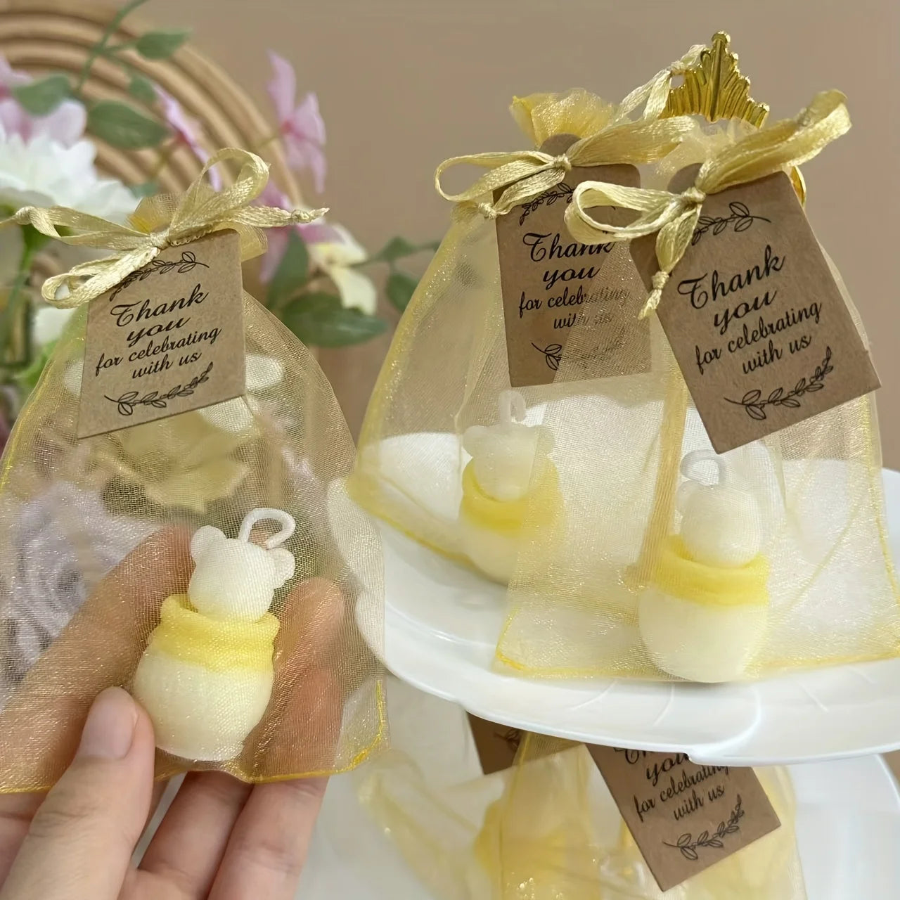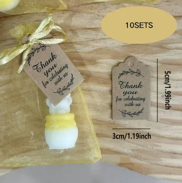 10sets White Bear Candles, with Cards and Golden Organza Bags Bags, Bee Themed Party Decorations Centerpieces for Tables