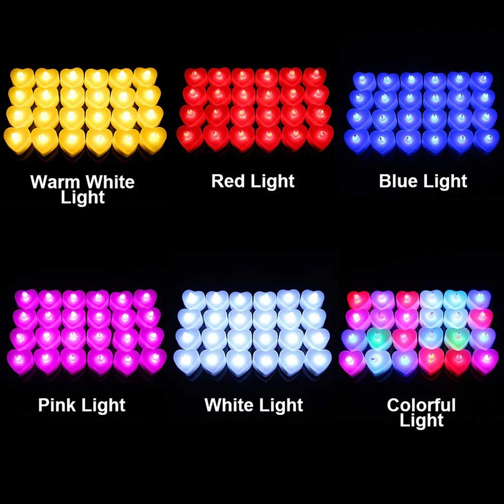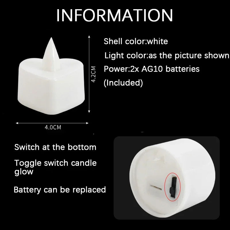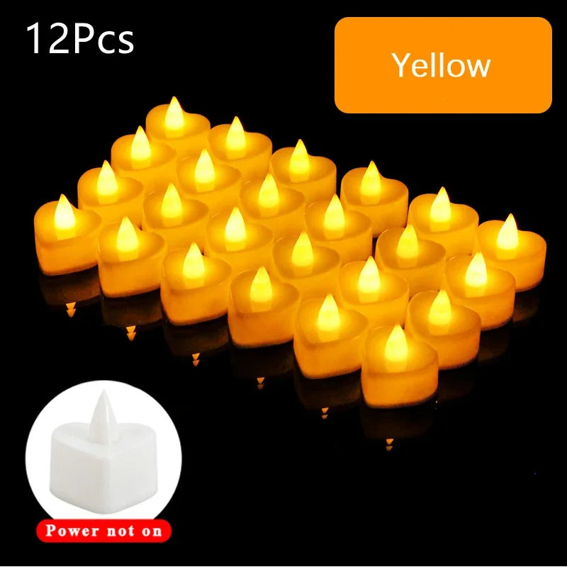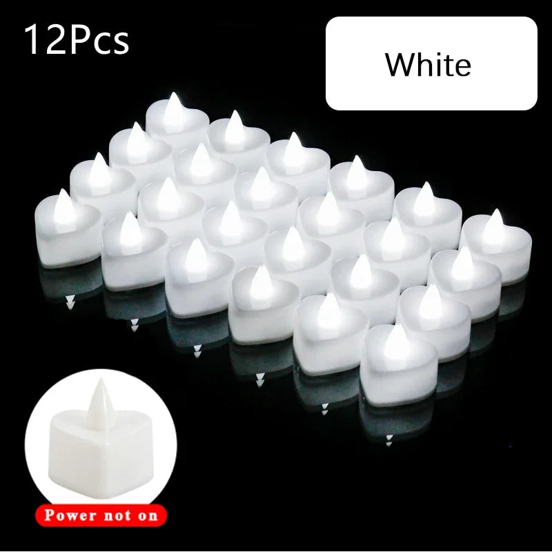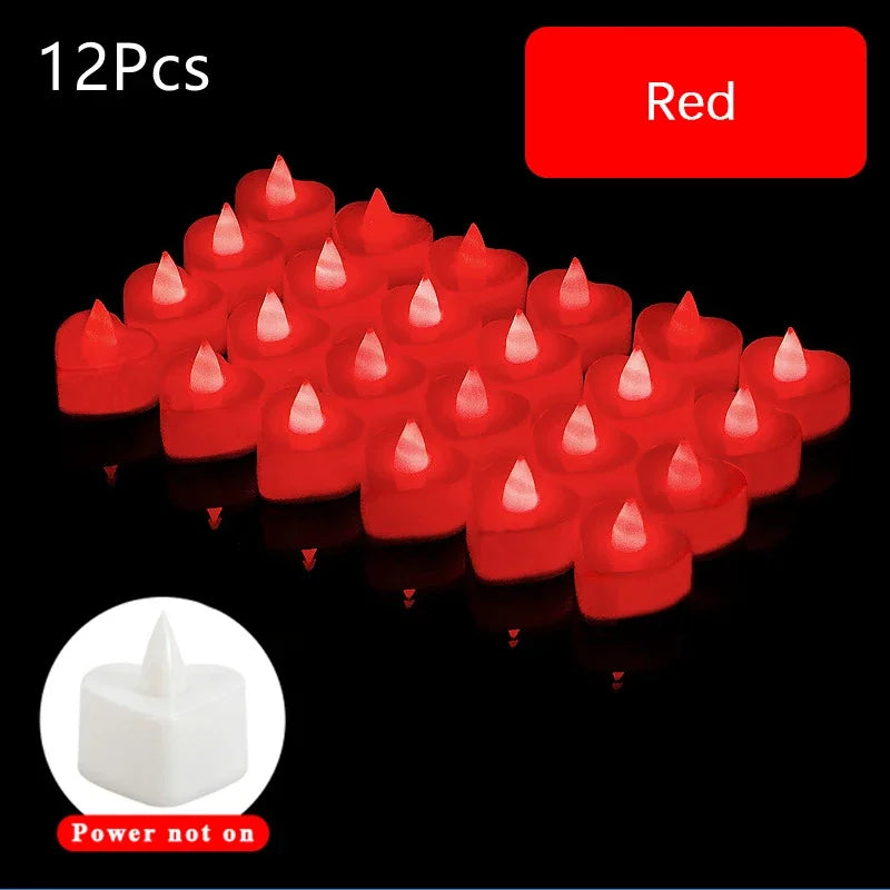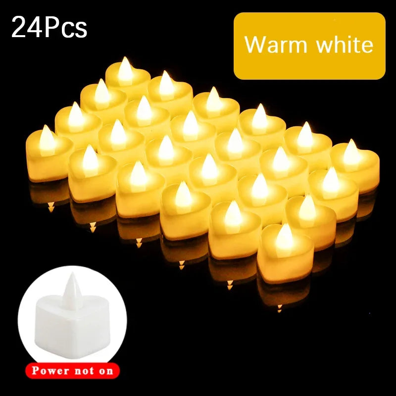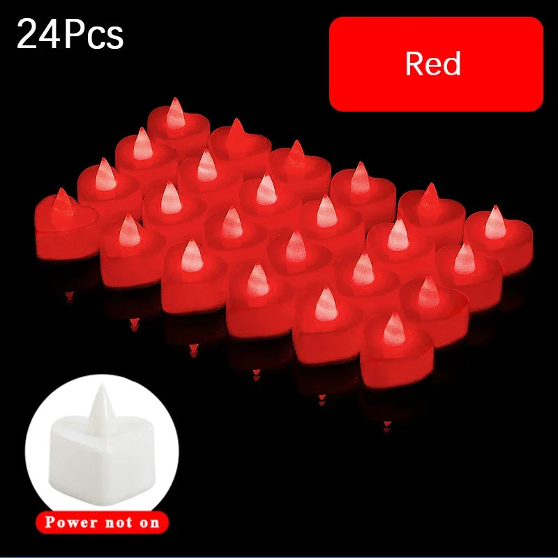12/24/48Pcs LED Candle Heart Shaped Electronic Tea Light Candles with Batteries Wedding Party Decoration Valentine's Day Gifts