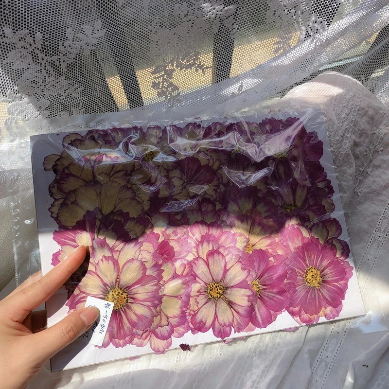 120pcs Dried Pressed Natural Purple Cosmos Bipinnata Cav. Flower For Postcard Photo Frame Jewelry Bookmark Craft DIY Accessories