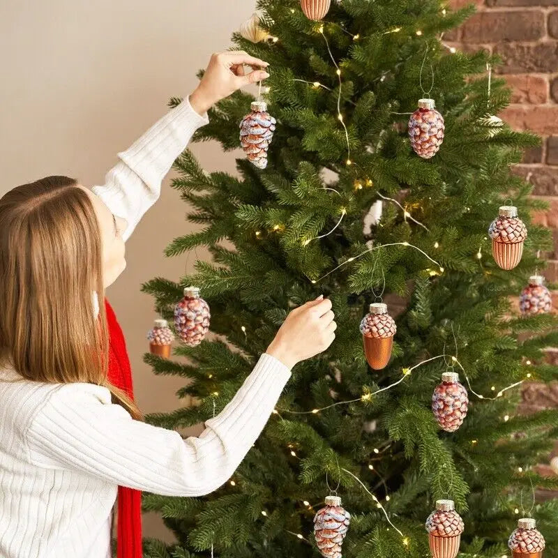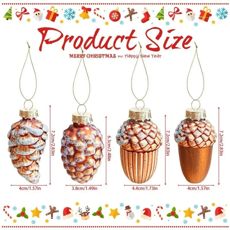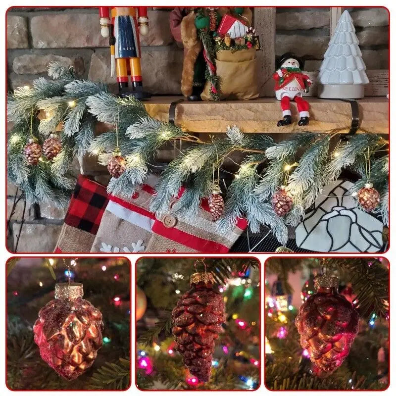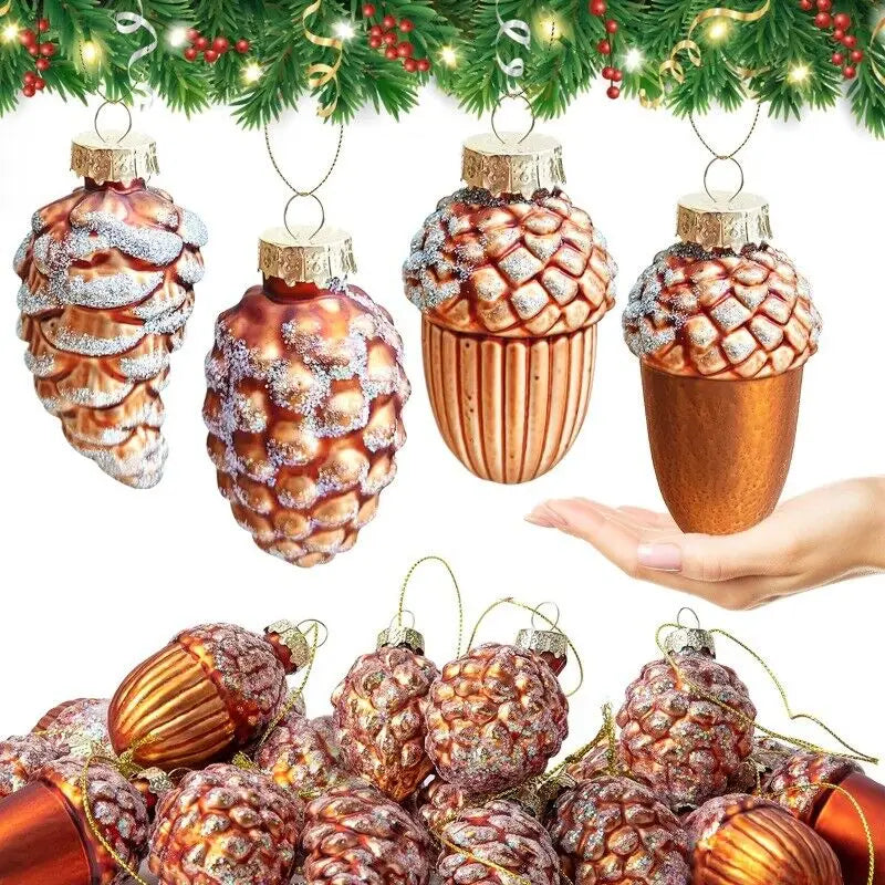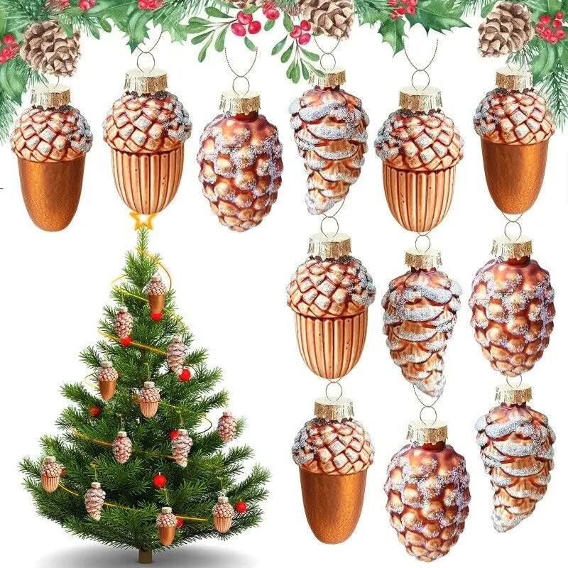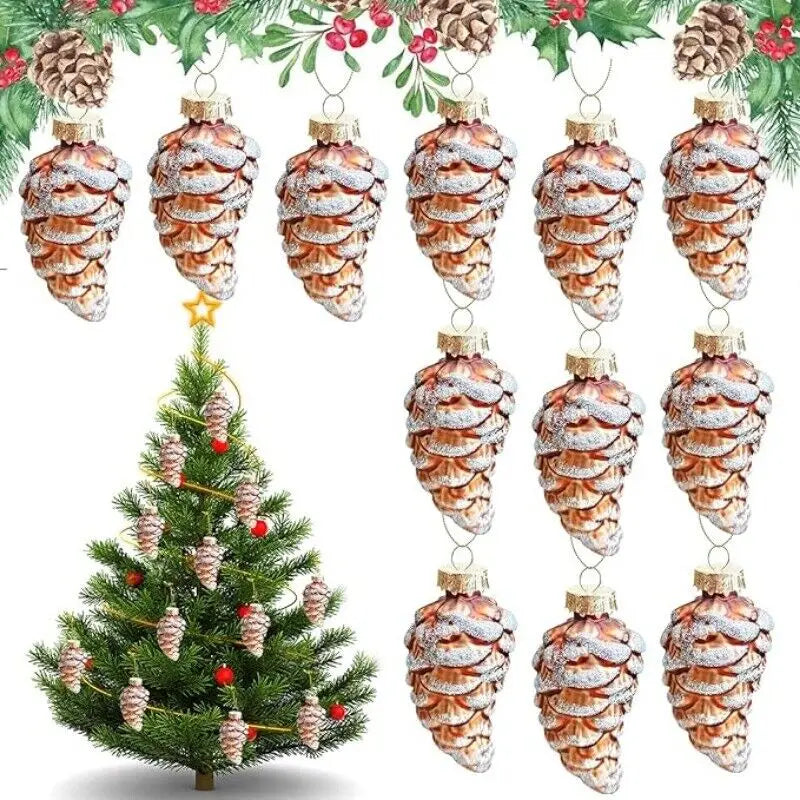 12pcs Christmas Tree Pinecone Glass Ornament Fall Hanging Christmas Tree Decor Hanging Wedding Traditional New Year Decor