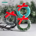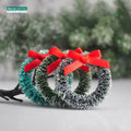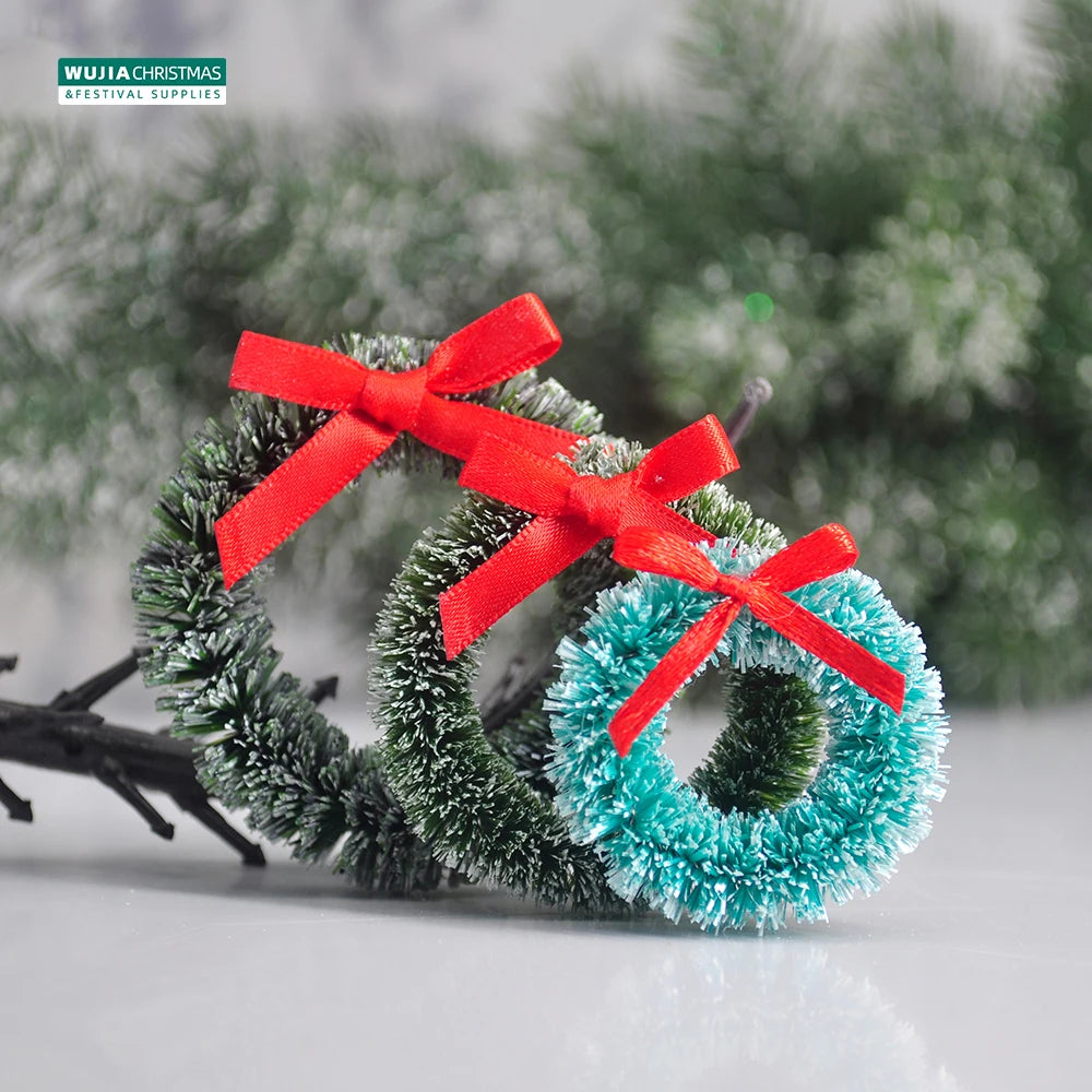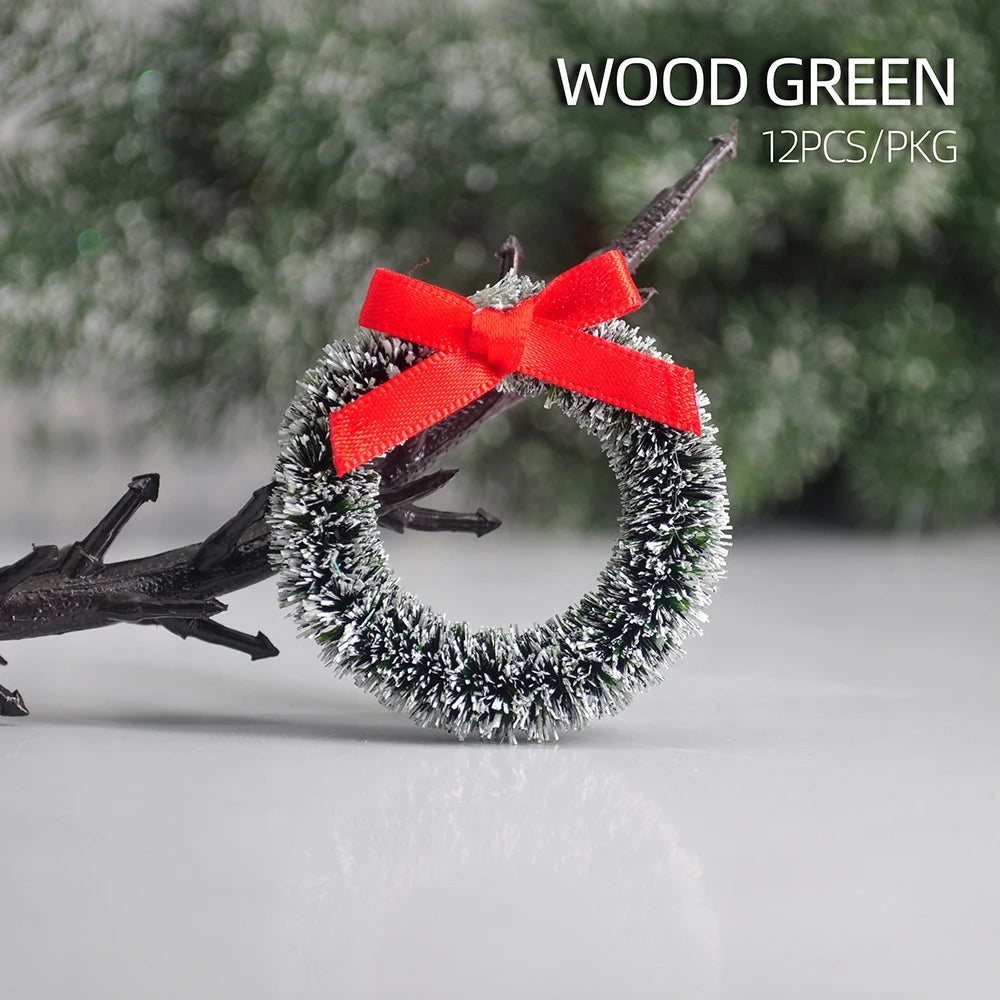 12pcs Christmas Wreath with Bow Xmas Tree Decor Mini Door Garland Hanging Ornaments DIY Dollhouse Pendant for Wedding Noel Party