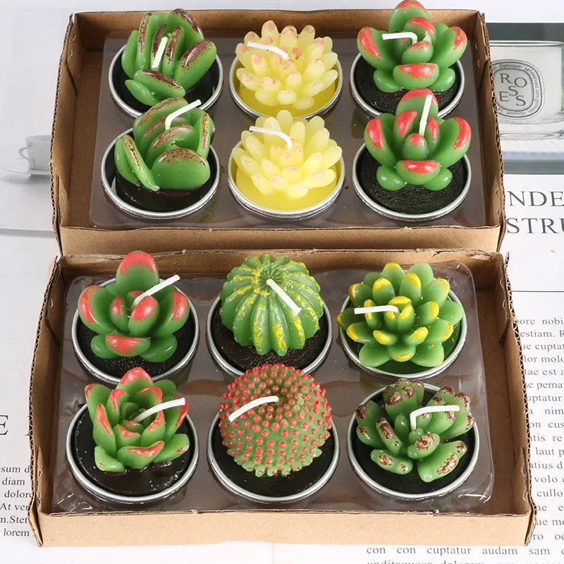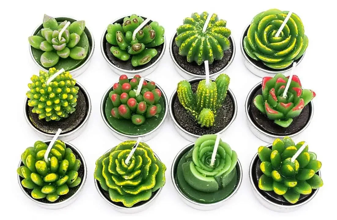 12pcs Mini Cactus Candles Succulent Greenery Candles Flameless Tea Light Candles Suitable for Party Wedding Home Decoration