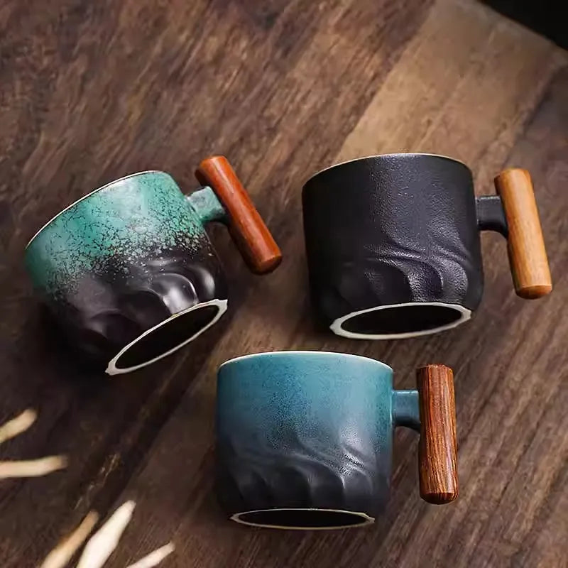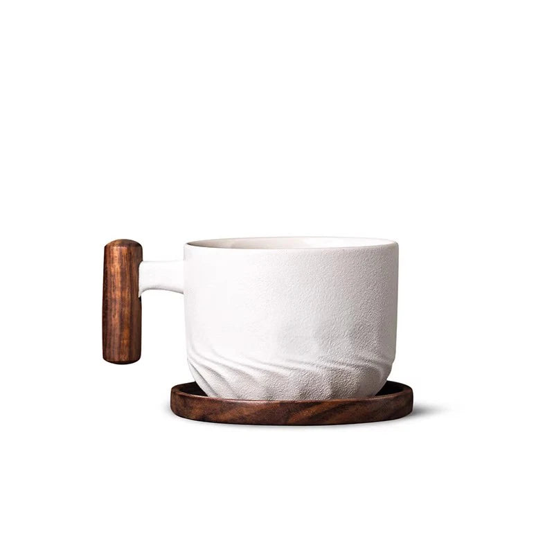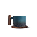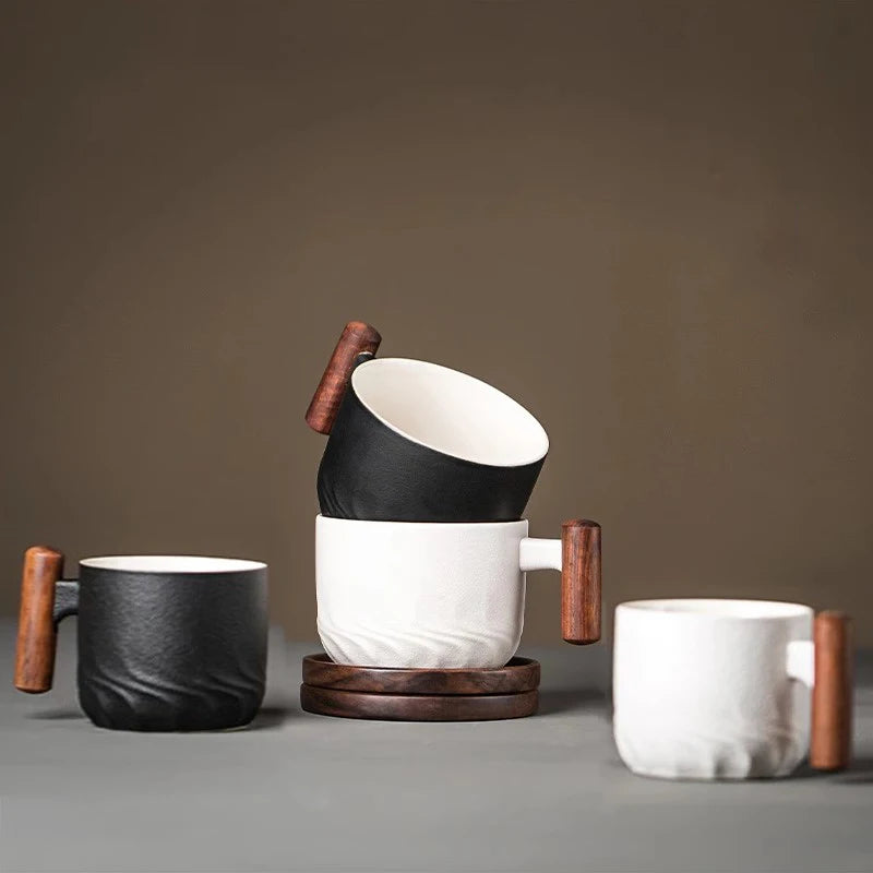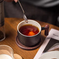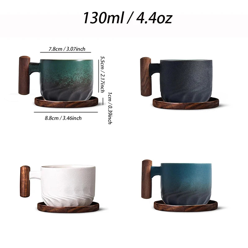 130ml Ceramic Coffee Mug With Wooden Handle Heat-resistant Kungfu Teacup With Coaster Kungfulatte Cappuccino Espresso Cup