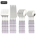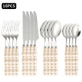 16pcs Pearl Tableware Set – Ceramic Handle Cutlery | Elegant Wedding & Home Dinnerware | NaturalBuiltHome