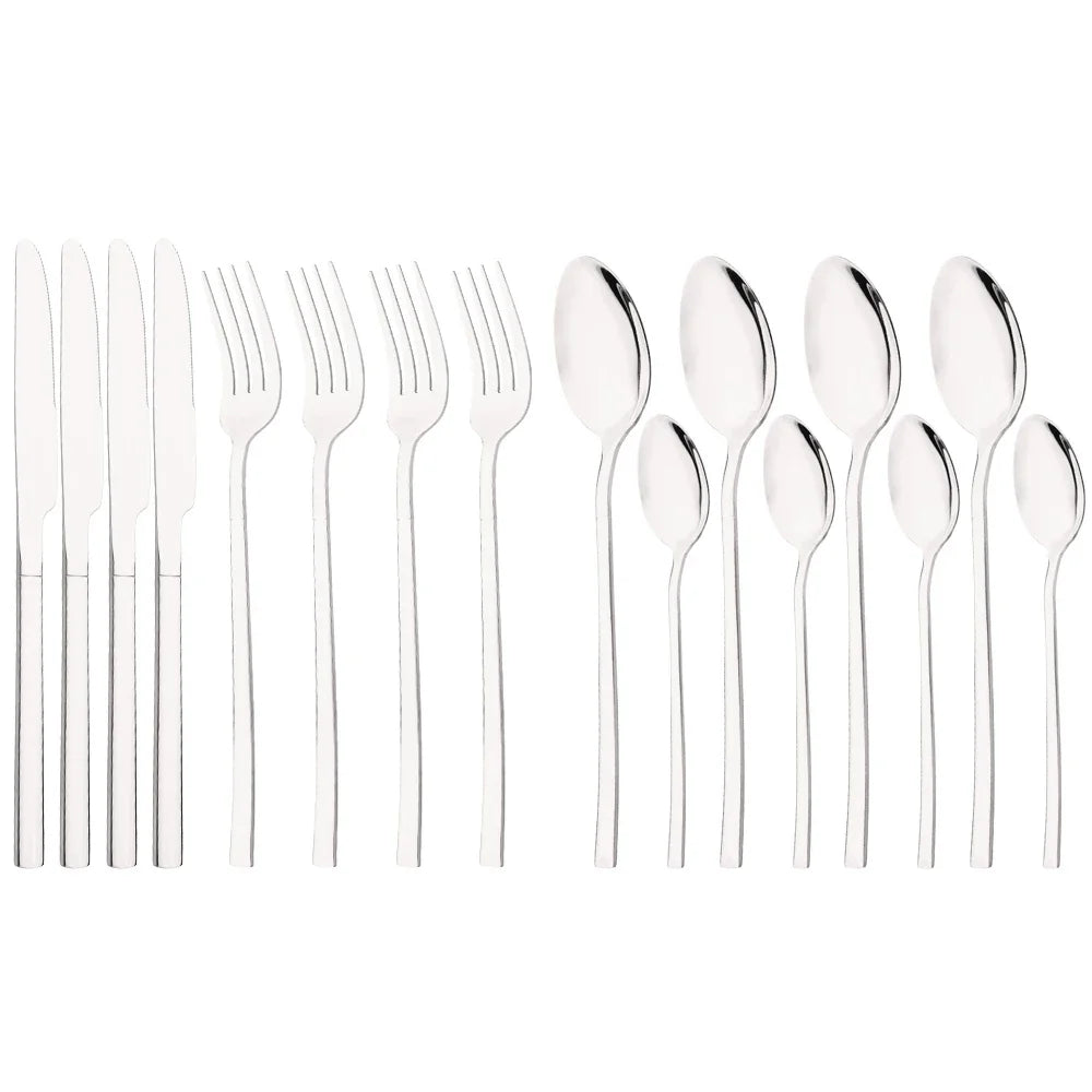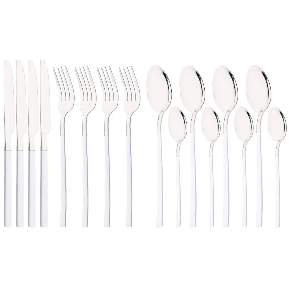 ✔️ Includes: Knives, forks, spoons, and tea spoons (16 pieces total)