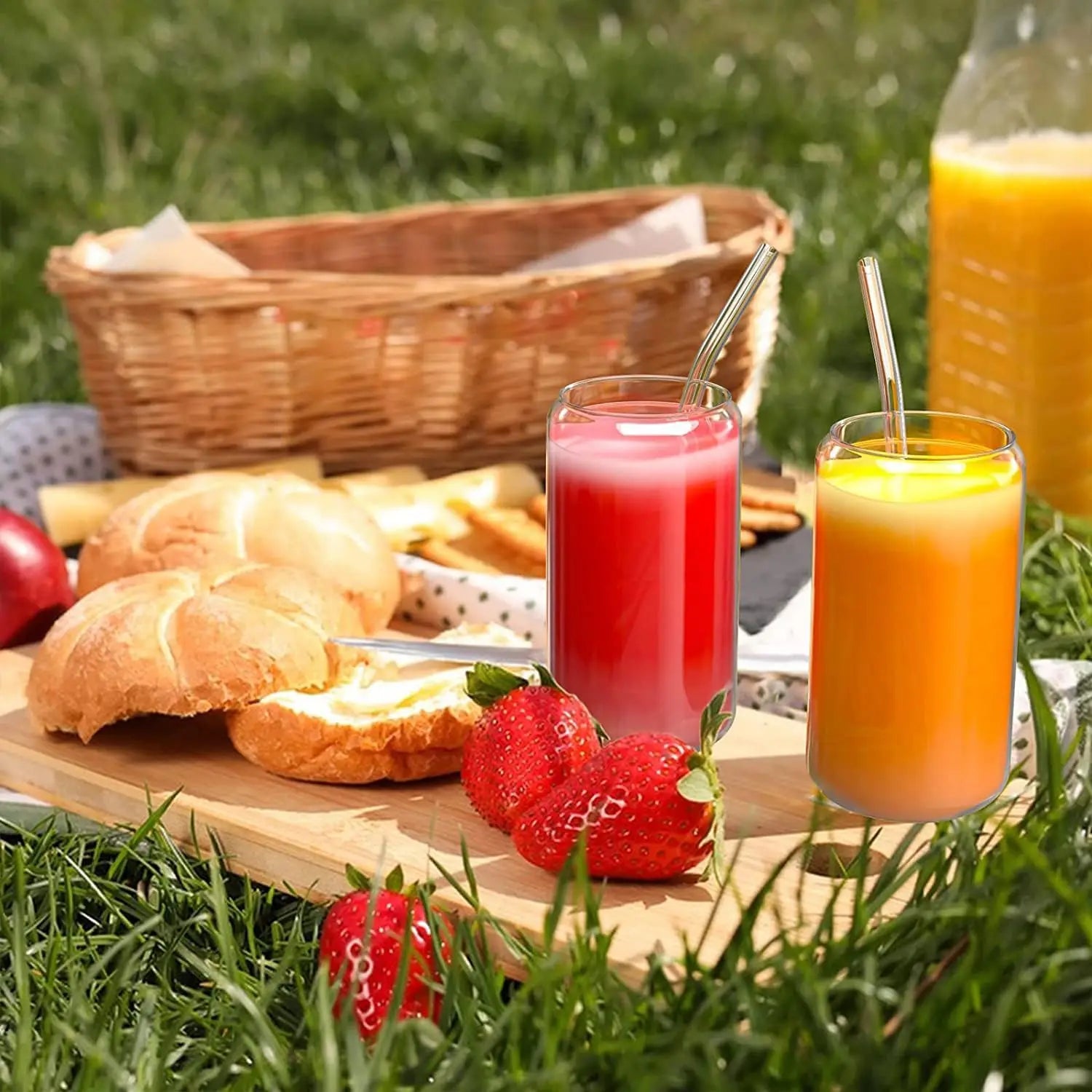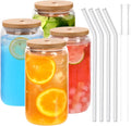 18.6oz 540ML Drinking Glasses Can Shaped Glass Cups with Bamboo Lids and Glass Straws for Beer Iced Coffee Wine Cocktail