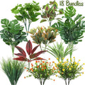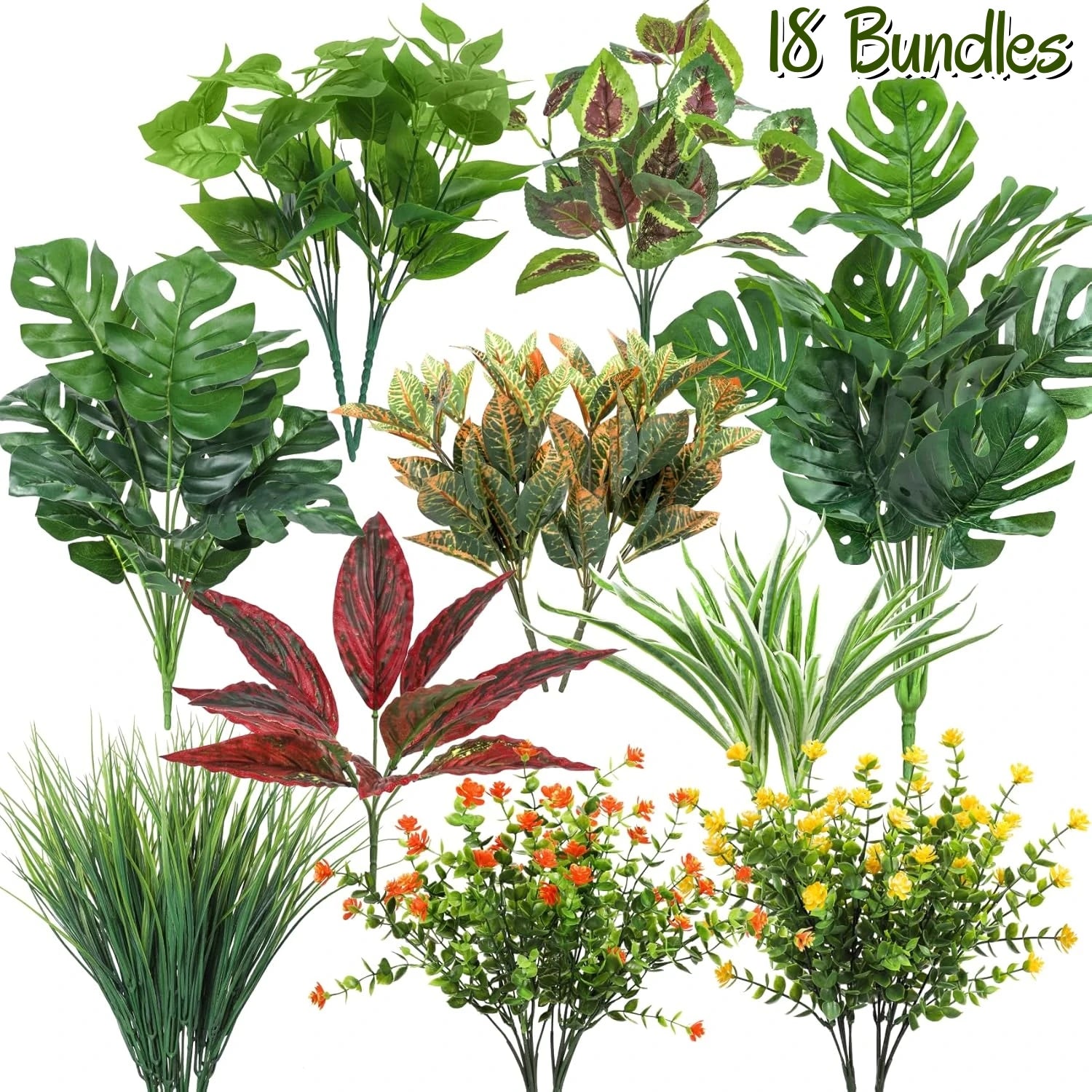 18 Bundles Outdoor Artificial Plants UV Resistant Fake Greenery Stems Faux Shrubs for Outside Porch Patio Garden Window Decor