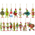 18Pcs 2D Acrylic Christmas Tree Green Monsters Ornaments Cute Green Monsters Christmas Tree Pendants Christmas Tree Decor