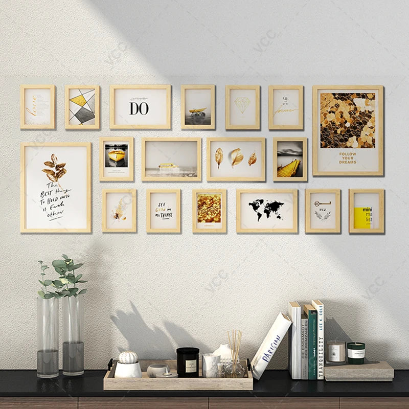 18Pcs Natural Wood Picture Frames For Wall Hanging Classics Wall Art Photo Frame For Living Room Decoration Gifts Home Decor