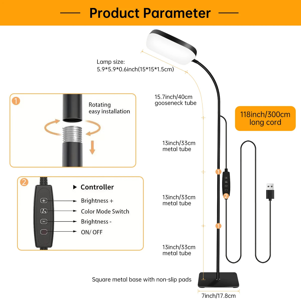 18W Floor Lamp with Touch Control Adjustable Brightness 360° Gooseneck LED Floor Lamps Eye-Caring Floor Lamp for Living Room