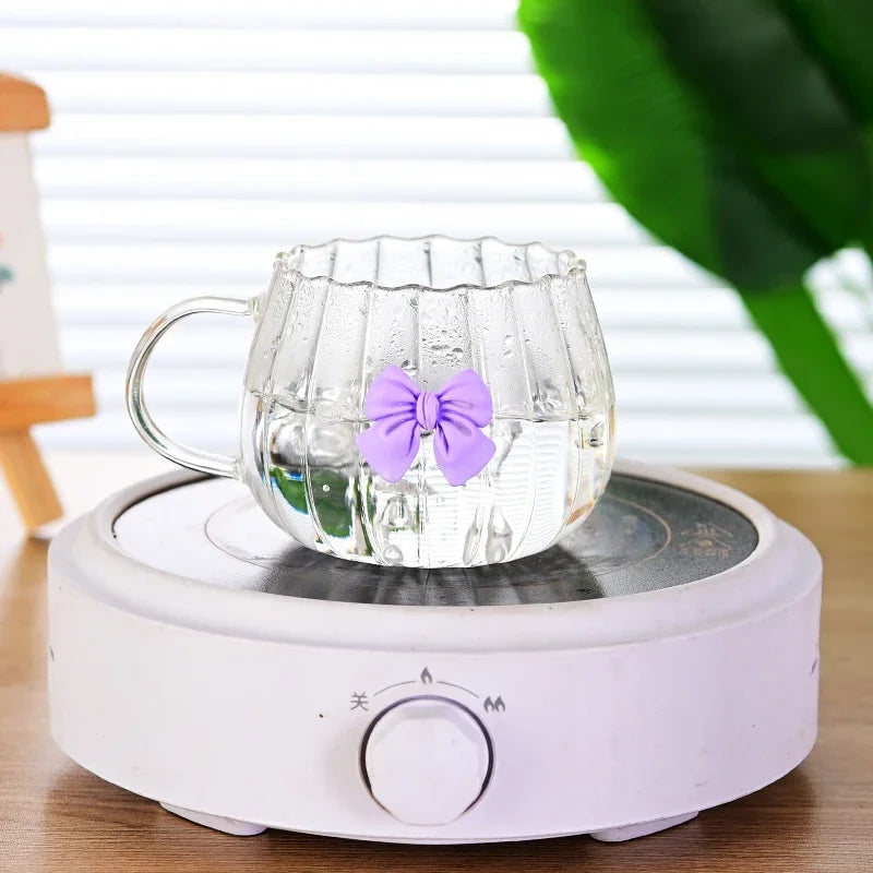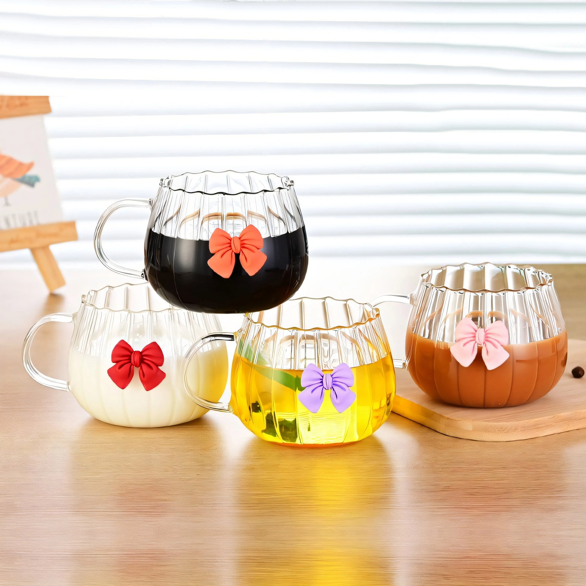 1PC Bow shaped glass cup, heat-resistant household coffee cup, juice milk beverage cup