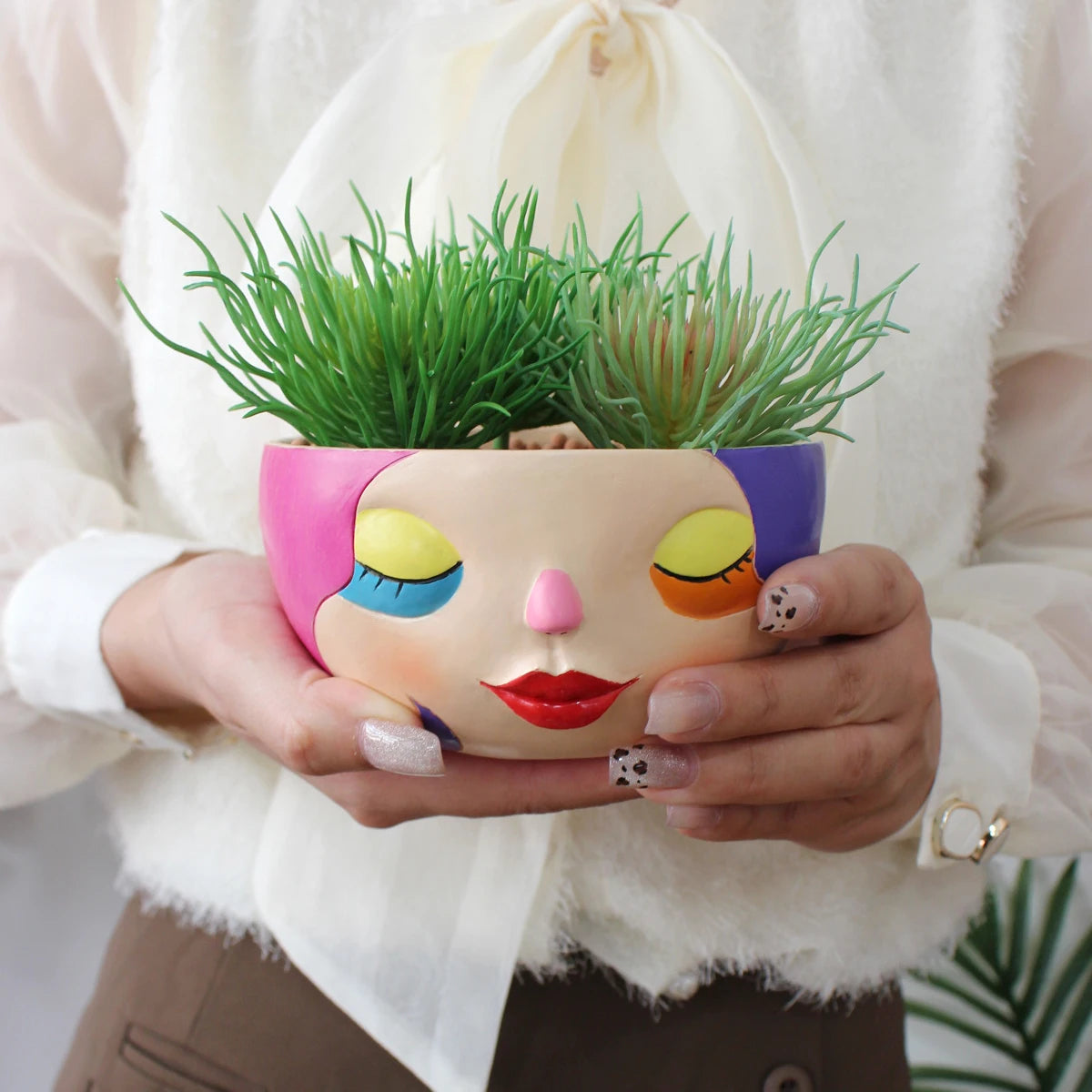 1pc colorful closed-eye human face flower pot, spring garden, backyard, lawn flower seed plant cultivation container