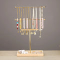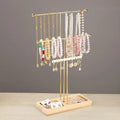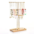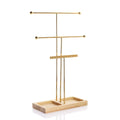 3-Layer Metal Jewelry Stand with Wooden Base – T-Shaped Necklace, Bracelet & Earring Holder | NaturalBuiltHome