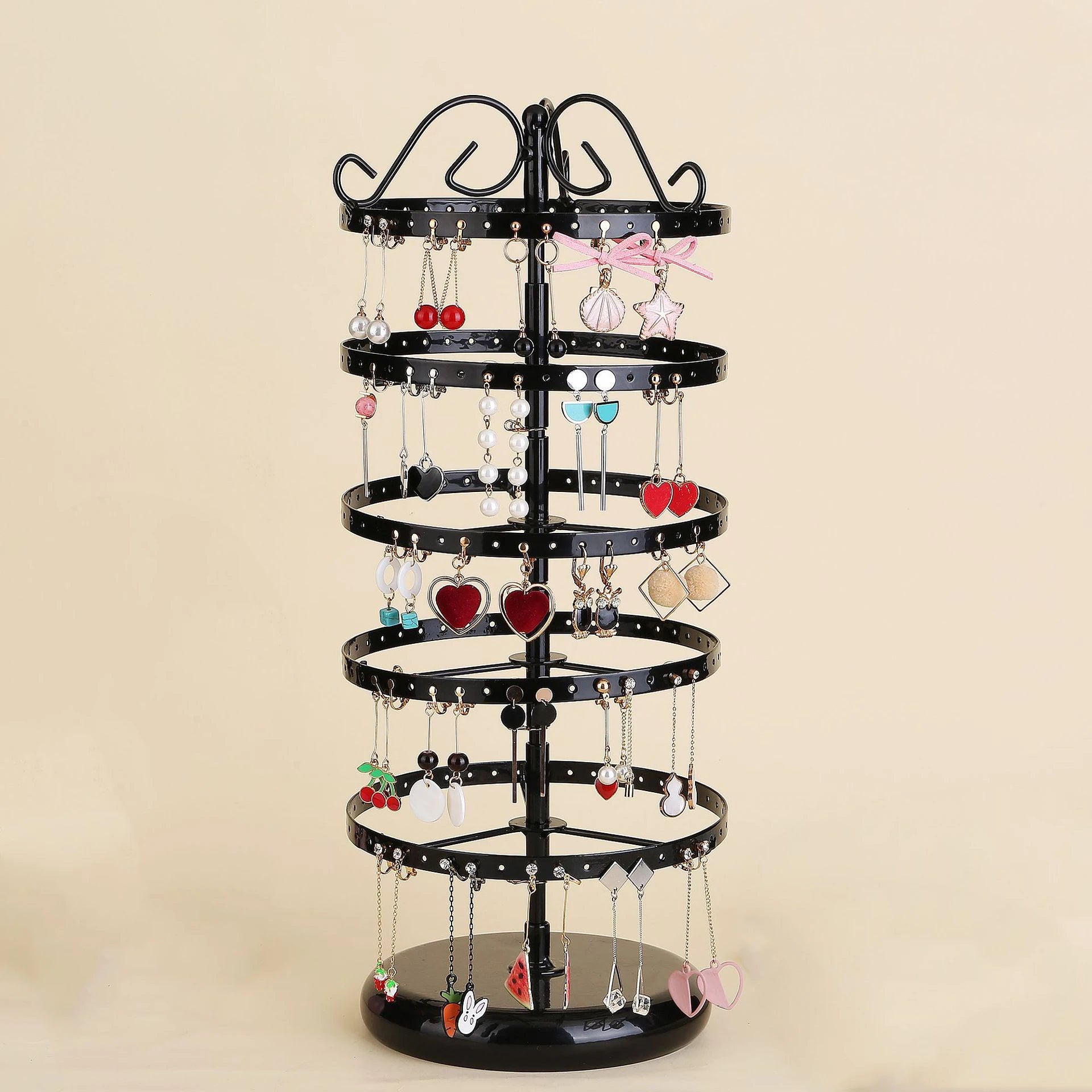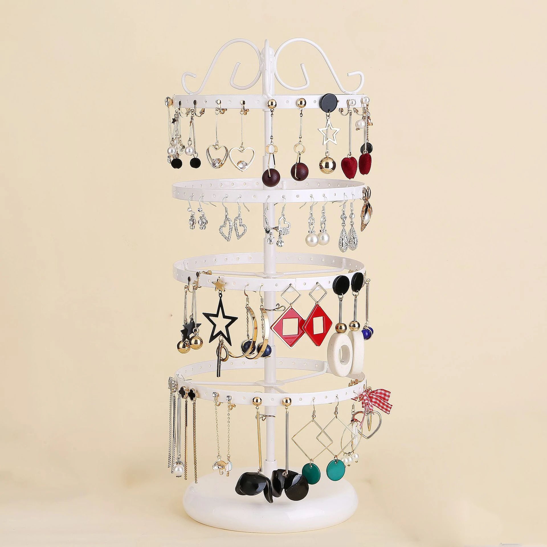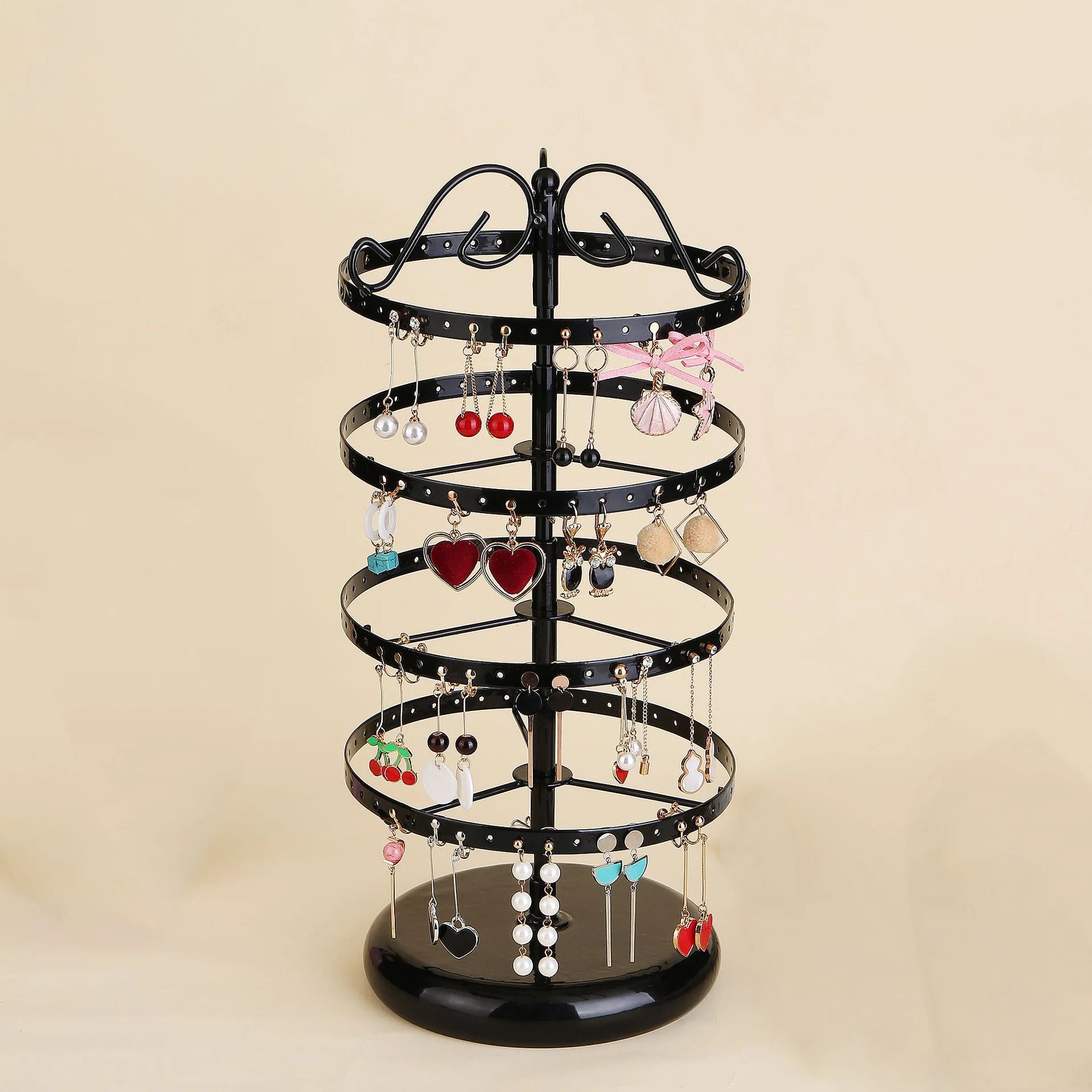✔️ 360° Rotating Stand – easy access to all your earrings