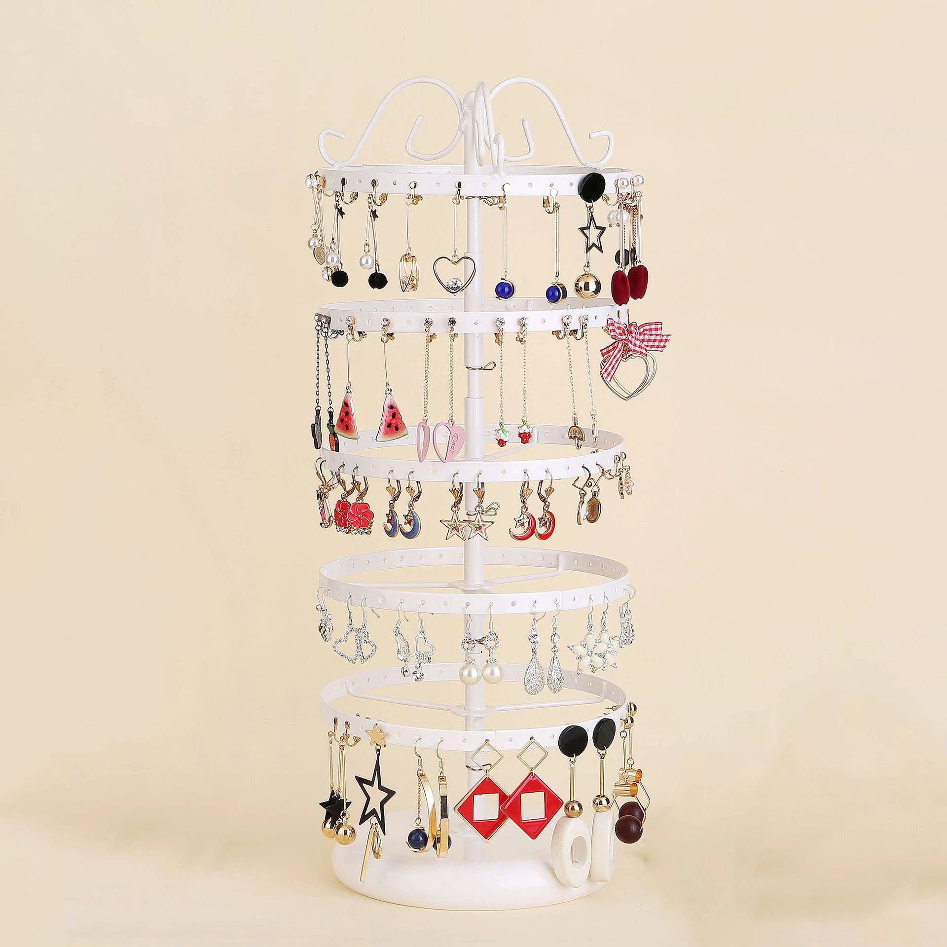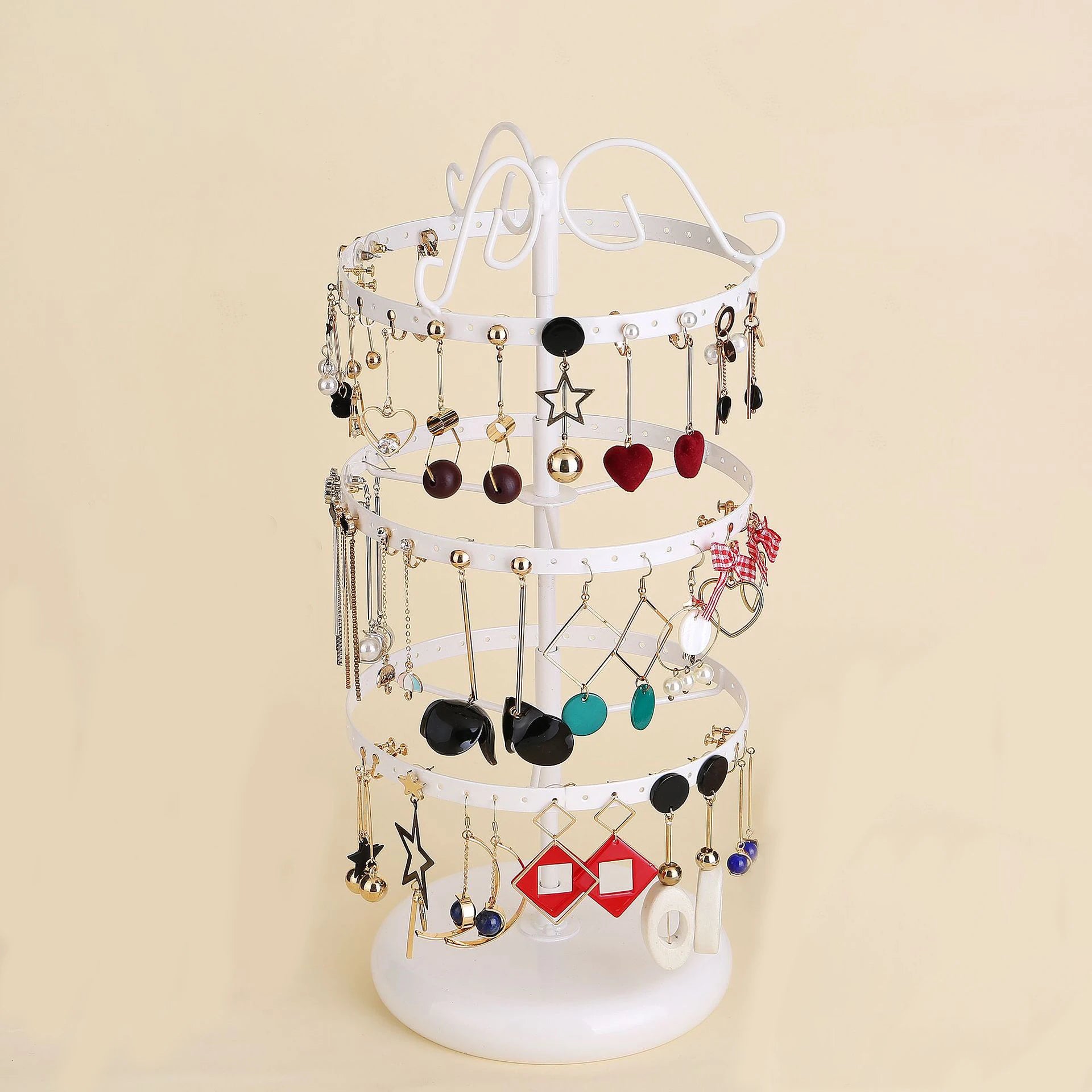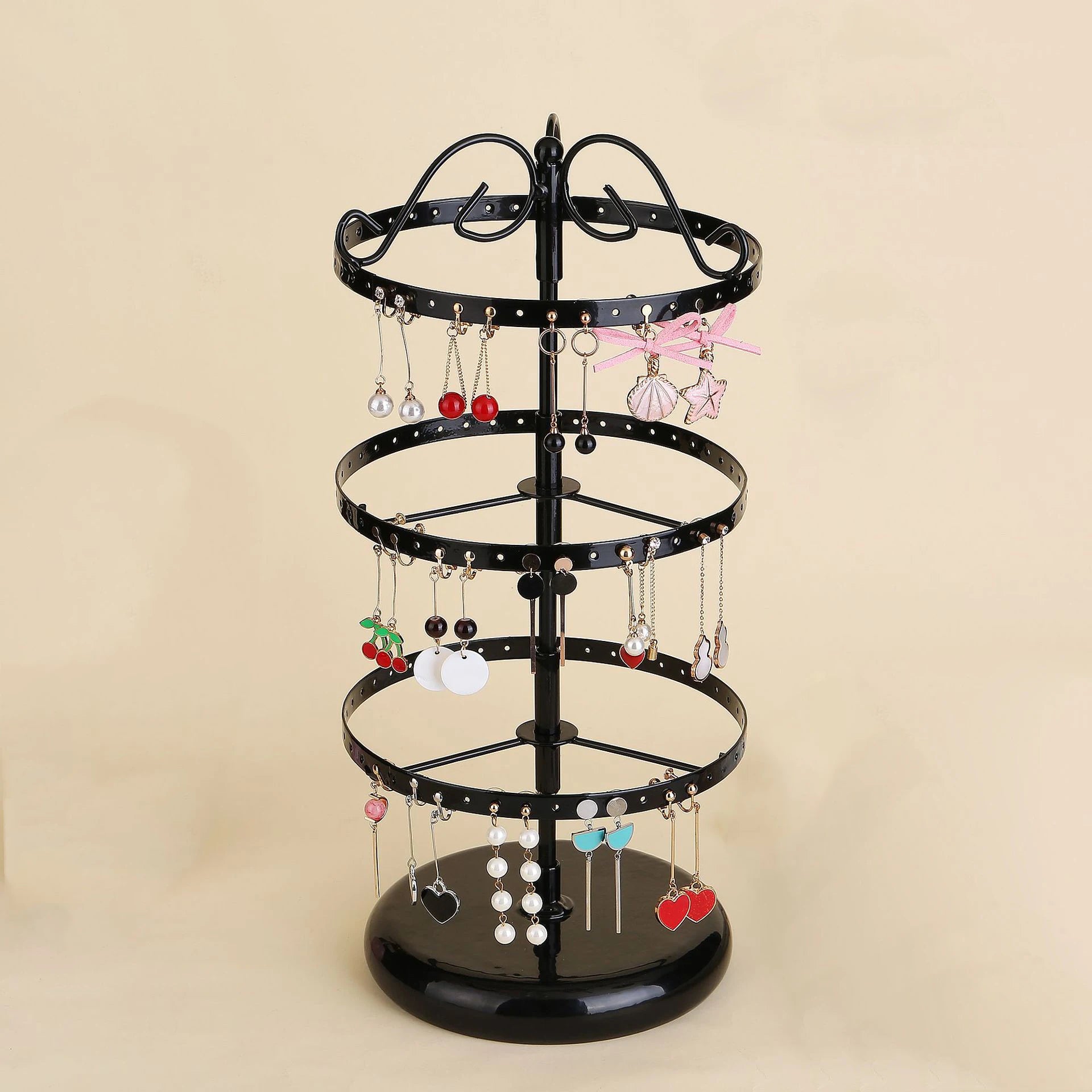 ✔️ 360° Rotating Stand – easy access to all your earrings